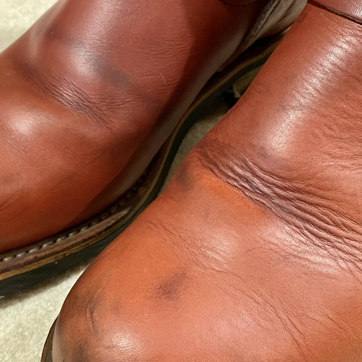 茶系なので多少黒ずみが目立ちやすいですが、ソールの減りもわずかで革もしなやかです。