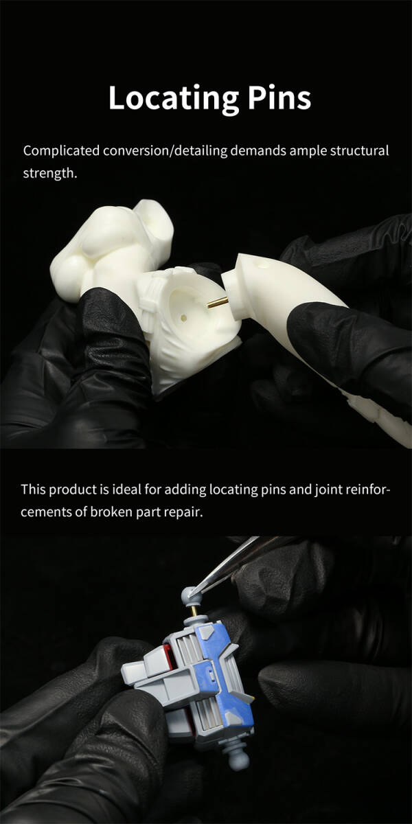 部材の強化、ヒンジやアンテナ柱の作成など、多様な使い方ができます。