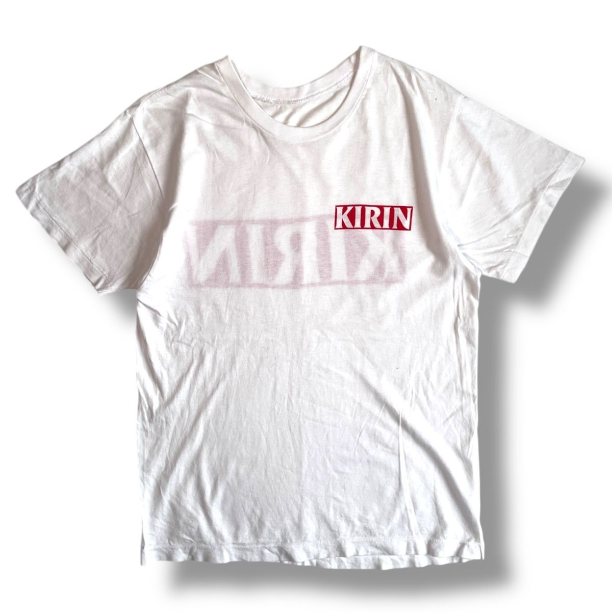 日本製★ 希少★ KIRIN ビバレッジ キリン 半袖 両面 ロゴ プリント Tシャツ 白 LOGO 企業 飲料 ヴィンテージ VINTAGE