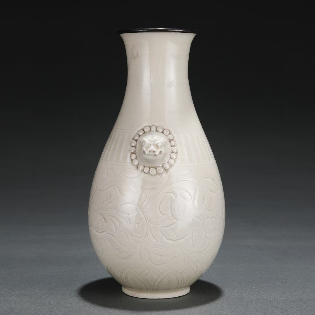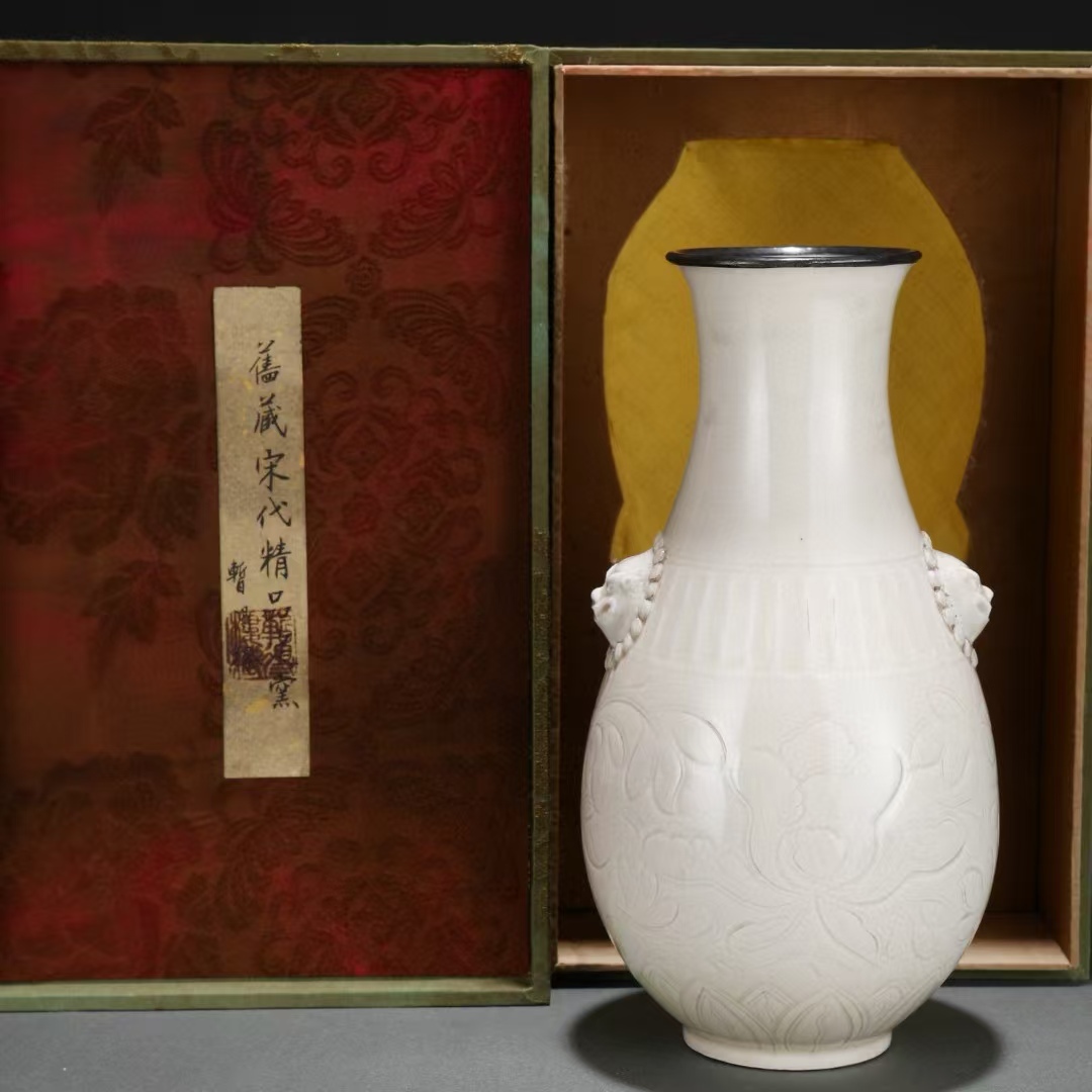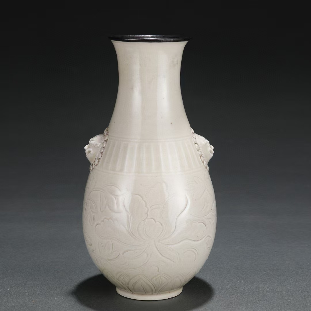 磁器 花瓶 秘藏 宋代 官窯 定窯 月白釉 刻花獣耳瓶、乾隆御題 酒器 茶器 唐磁 染付 陶磁器 收蔵品 時代物 古置物 希少珍品 中國文玩6.22