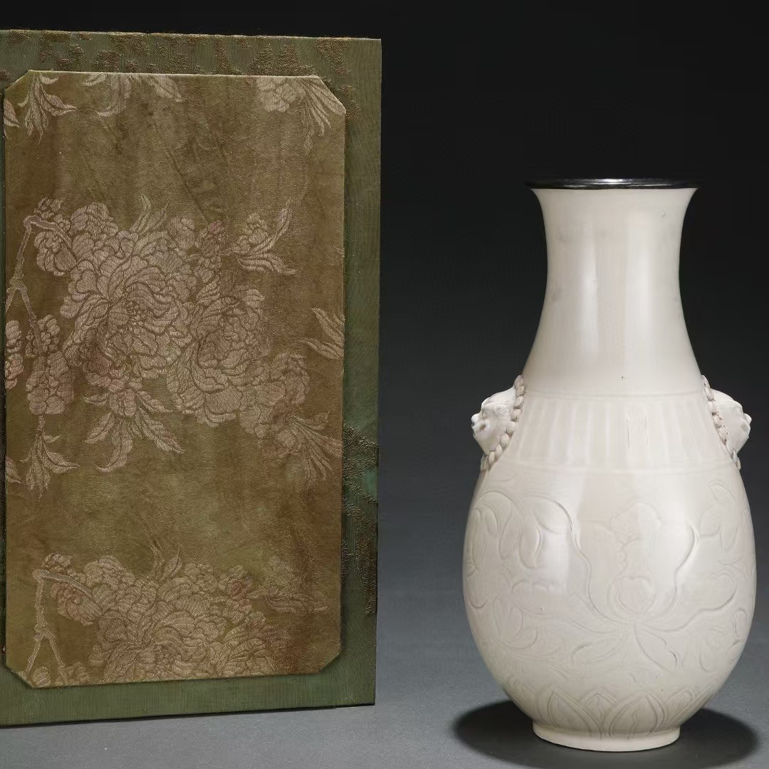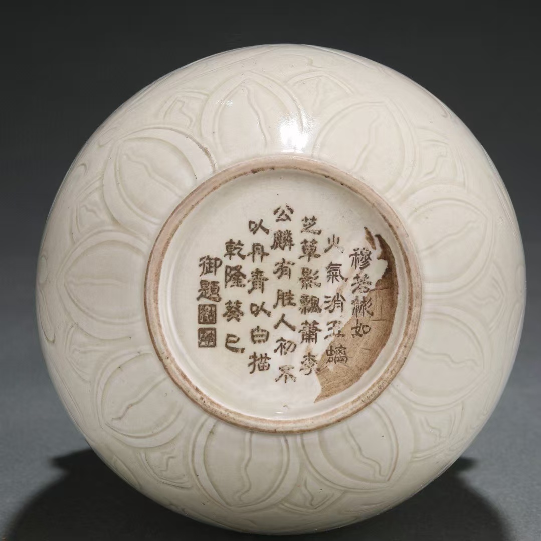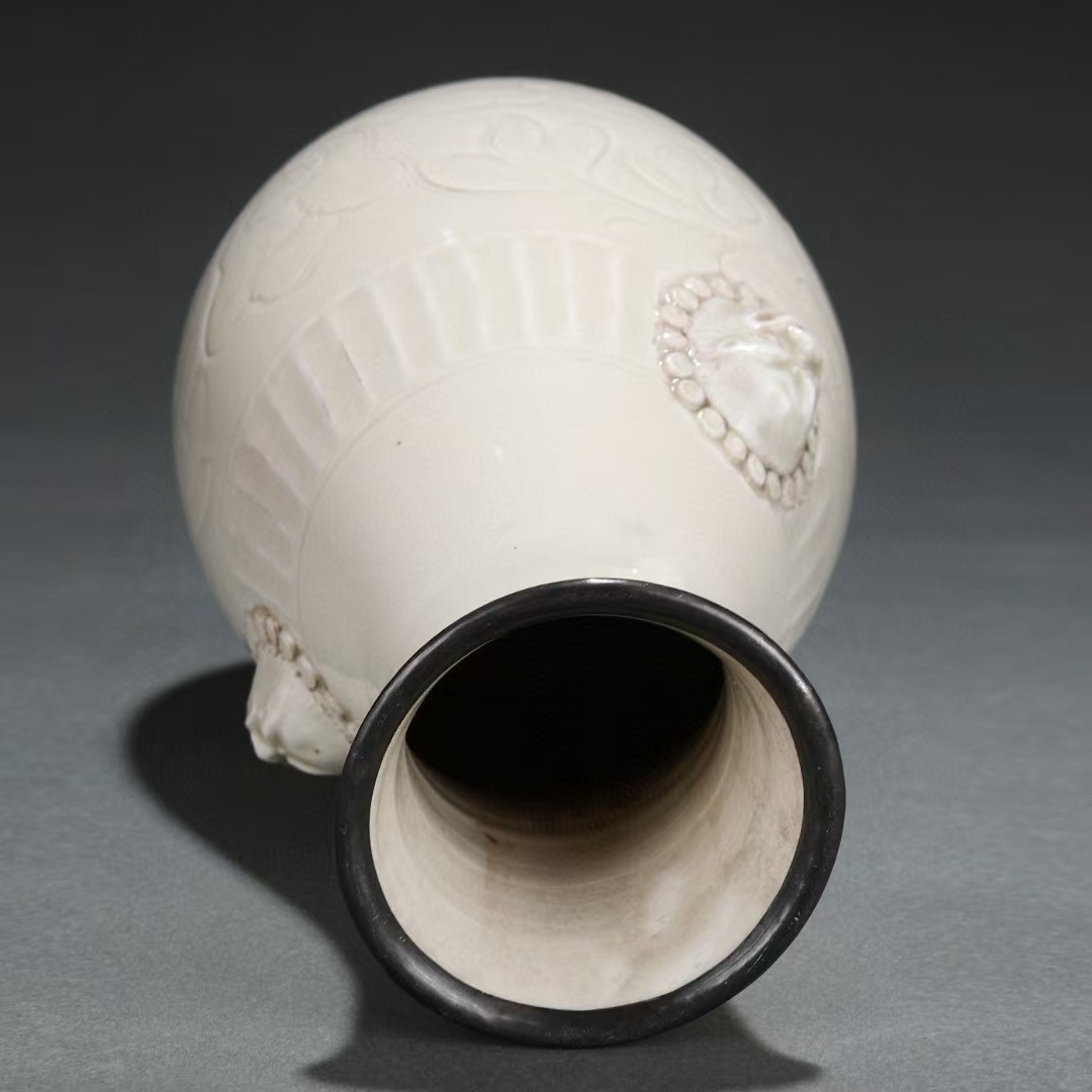 磁器 花瓶 秘藏 宋代 官窯 定窯 月白釉 刻花獣耳瓶、乾隆御題 酒器 茶器 唐磁 染付 陶磁器 收蔵品 時代物 古置物 希少珍品 中國文玩6.22