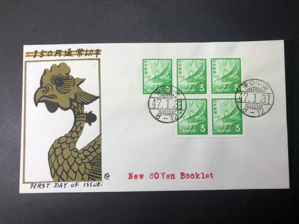 ★FDC 初日カバー★普通切手 切手帳ペーン 3円「ほととぎす」 5枚張 渡辺版 昭和47年発行 Y7991