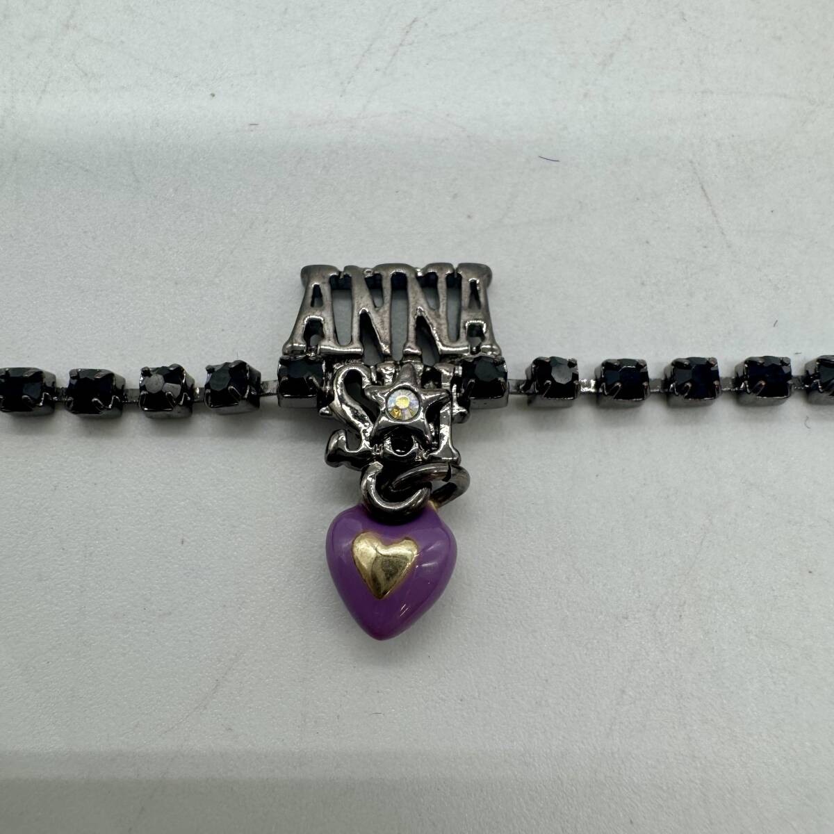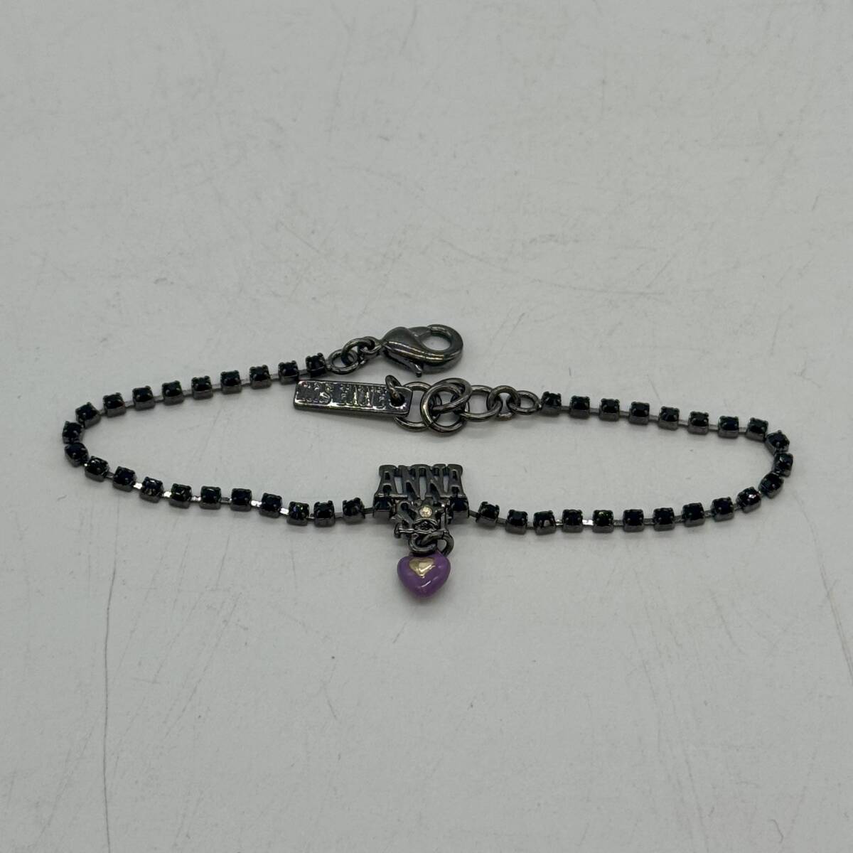 商品名:S9390I〇 ANNA SUI アナスイ ラインストーン ハート ロゴ ブレスレット アクセサリー ブラックストーン シルバー レディース ブランド【0】