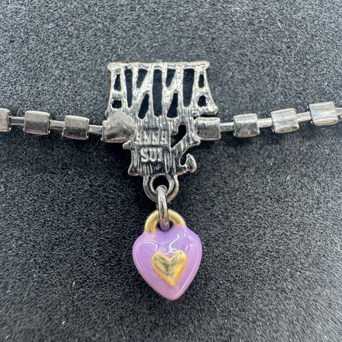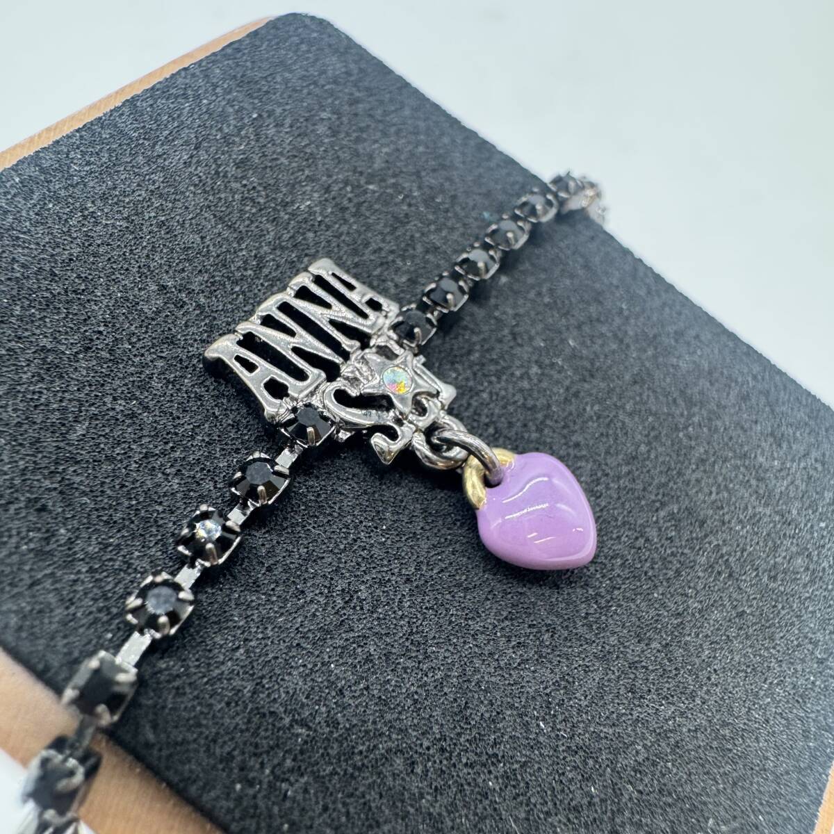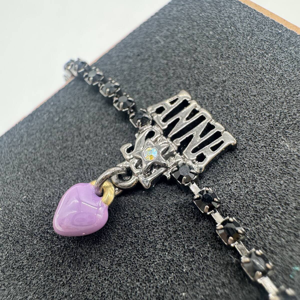 S9390I〇 ANNA SUI アナスイ ラインストーン ハート ロゴ ブレスレット アクセサリー ブラックストーン シルバー レディース ブランド