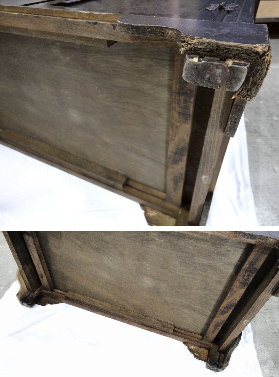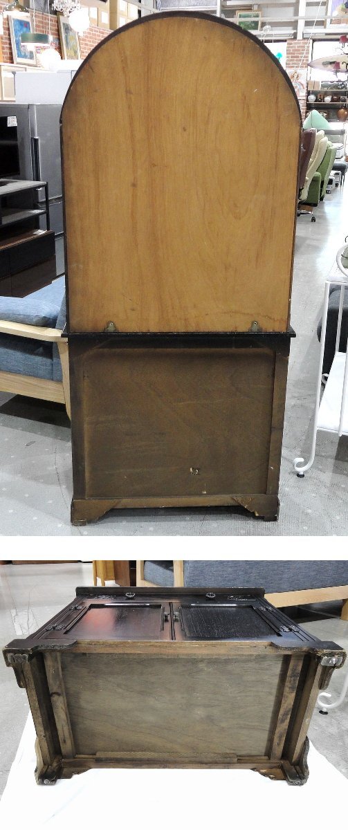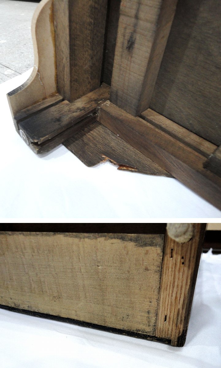 | コメント | ●オランダのアンティーク品として個人様より買取いたしましたが、申し訳ありませんが、アンティーク調に製作された家具かなど判りません。 ●ビンテージ品の印象で、ヒビ、浮き、擦れ、経年変化等見られます。扉付き下部の背面は穴があけられています。 ●脚周りはひび割れの接着補修なども見られます。 ●撮影時に照明が当たって白く映っている箇所がありますがご了承ください。 ※ご入札前に「注意事項」を必ずご確認下さい。 ※商品の色が実際の色とは多少異なってみえる場合がございますが、ご了承下さい。 ※画像に上手く写らなかった微細な傷や汚れなどはご容赦お願いいたします。 |
