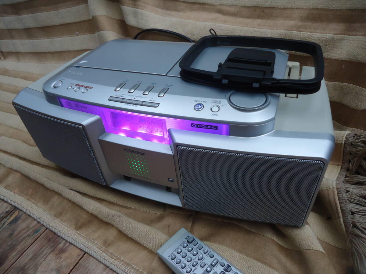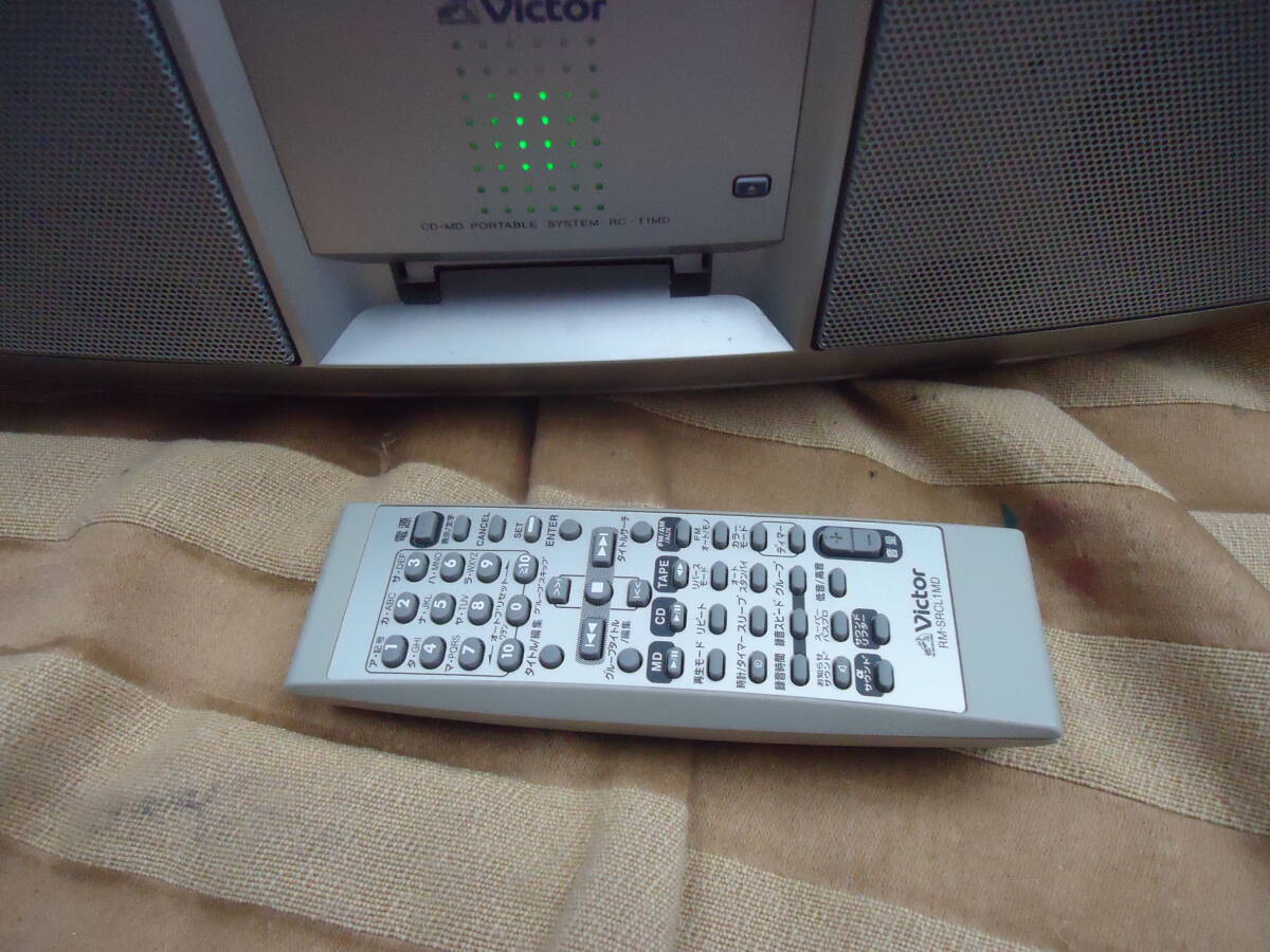 VICTORラジカセ希少 テープオートリバース・CD/MD/FMAMすべて動作品 リモコン・アンテナ付属 RC-T1MD
