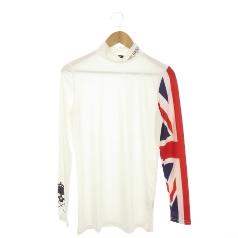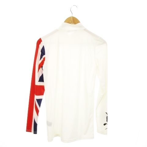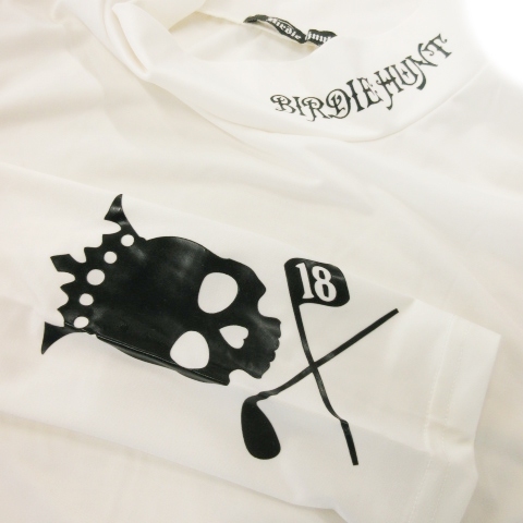 バーディーハント BIRDIE HUNT カットソー ハイネック 長袖 ストレッチ ドクロ ユニオンジャック ロゴ ゴルフ L 白 ホワイト