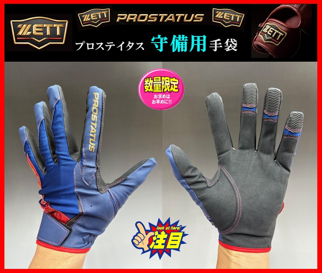 253◆限定カラー・刺繍無料◆ ゼット プロステイタス 守備用 手袋 紺×赤 左手 M(24-25cm)BG23012B  検)ミズノプロ.グラブ.ミズノ