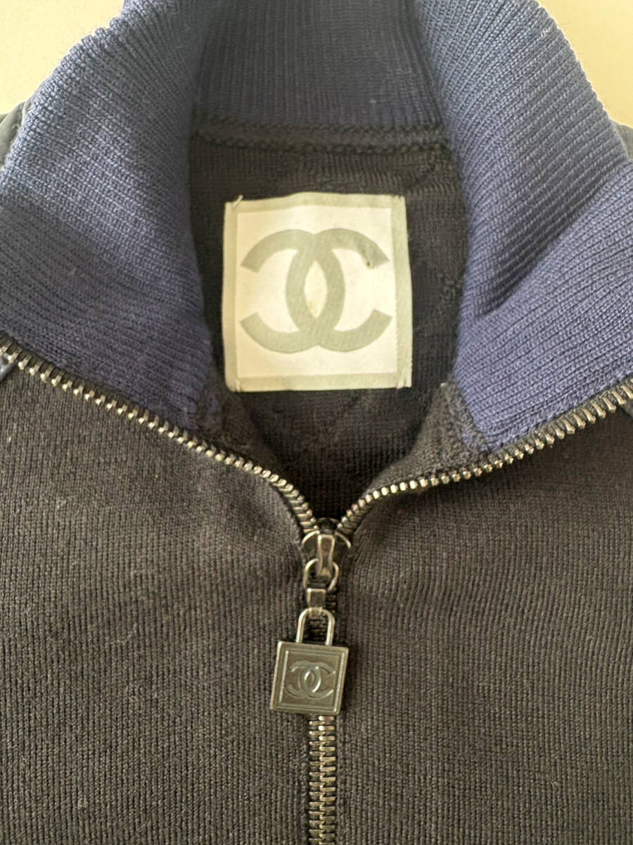 | コメント | ハワイのアラモアナシャネルブティックで購入いたしました。裾と袖口にCHANELロゴがあります。ショルダーとポケットはサテン風のマトラッセです☆ |