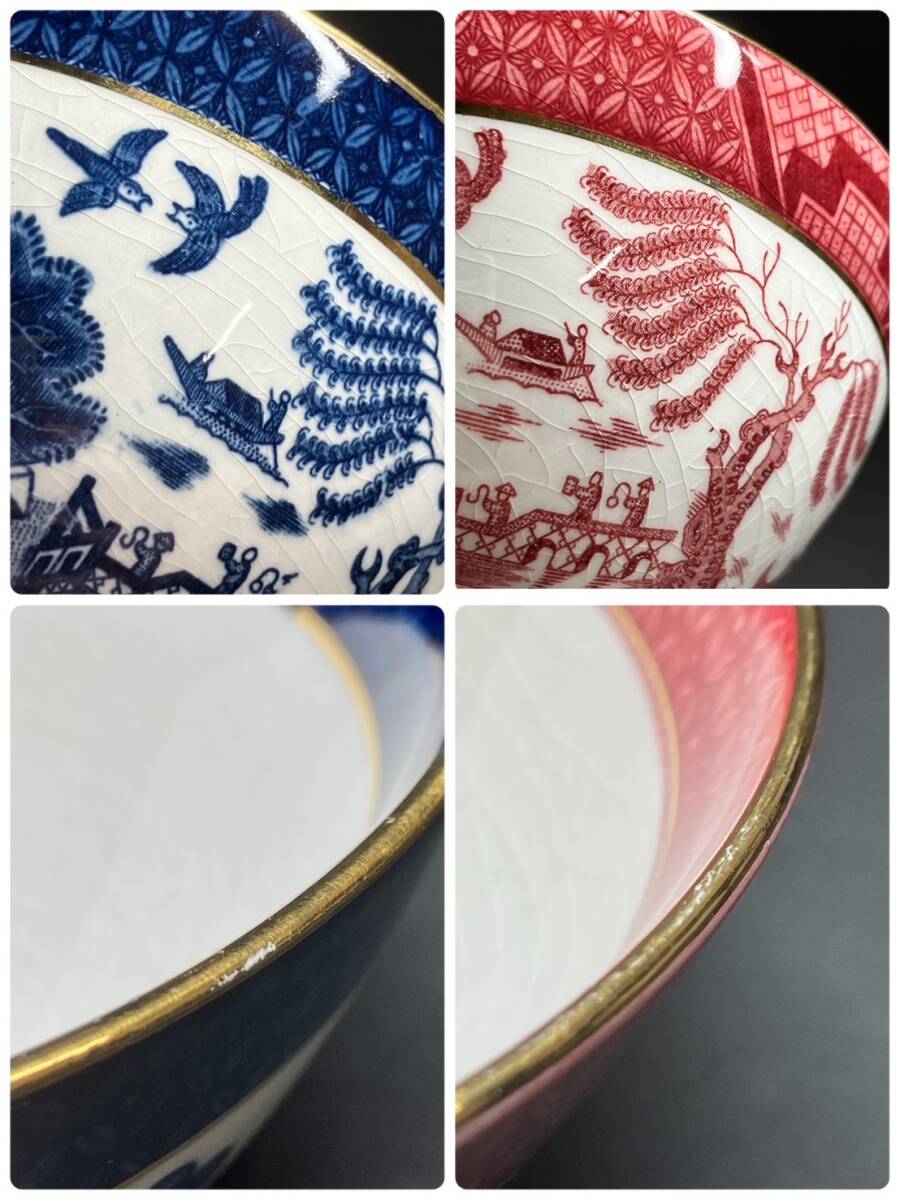 | ●赤サイズ 経口:約11cm 高さ:約5.6cm ●青サイズ 経口:12cm 高さ:6.2cm 赤と青の和柄に金縁がお洒落なニッコーの夫婦茶碗です。 | |||