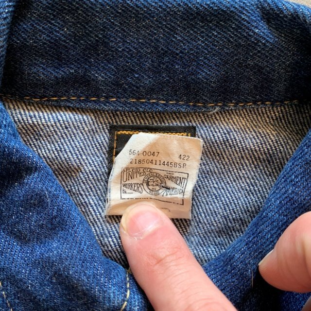 ★商品状態★ ・着用感ございますが特に目立つダメージや汚れなどは見当たりません。 ・古着慣れされている方でしたら問題なく着用していただける程度かと思います。 ・MADE IN USA ★素材★ デニム ★配色★ 濃紺 ★サイズ表記★ ボーイズ14 ・実寸を参考にして下さい。 ★実寸サイズ★ 肩幅38㎝ 身幅42㎝(脇下~脇下) 着丈50㎝(襟下~裾) 袖丈53㎝(肩~袖先) ・平置きにての採寸となります。 ・若干の誤差はご了承ください。 |