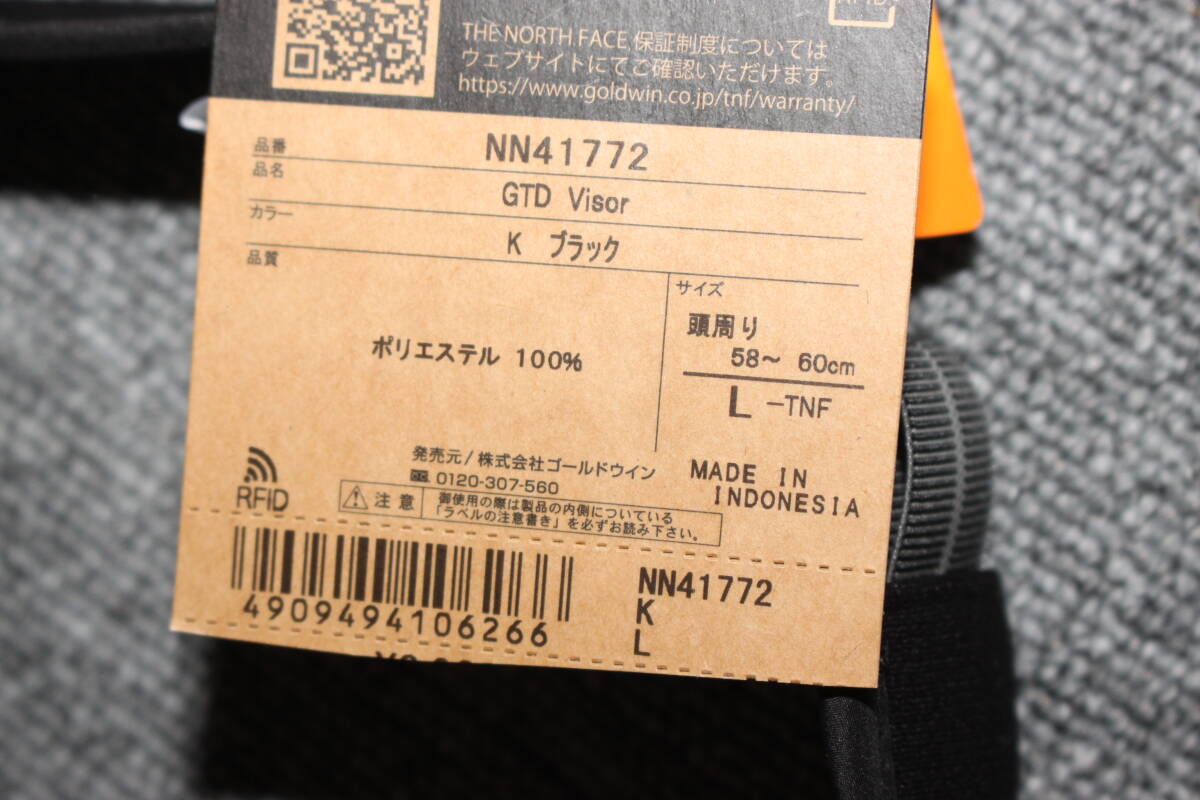 未使用 L 58-60㎝ 黒 ノースフェイス サンバイザー GTD Visor ランニング アウトドア NN41772 送料無料即決