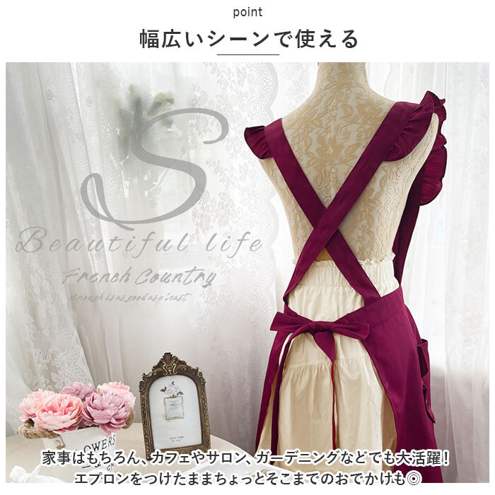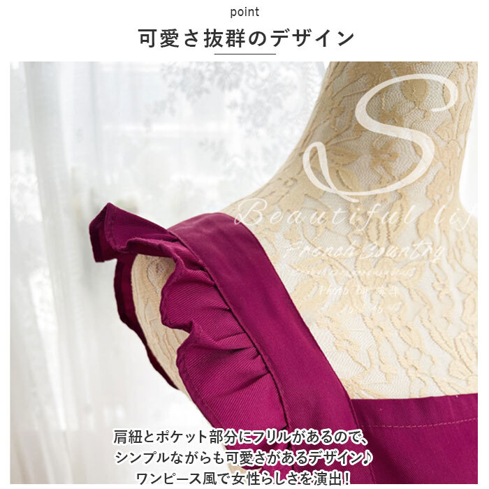 | 商品説明 | ・・ひらひらフリルが大人可愛い♪「エプロン」が登場! ・【可愛さ抜群のデザイン】 ・肩紐とポケット部分にフリルがあるので、シンプルながらも可愛さがあるデザイン♪ワンピース風で女性らしさを演出! ・【バッククロスタイプの肩紐】 ・バッククロスタイプの肩紐なので、肩紐が落ちにくい◎後ろ姿が可愛いのも嬉しいポイント♪ ・【ポケット×2】 ・フロント部分にはポケットが2つ!スマホやレシピなどをサッと入れられるので便利! ・【幅広いシーンで使える】 ・家事はもちろん、カフェやサロン、ガーデニングなどでも大活躍!エプロンをつけたままちょっとそこまでのおでかけも◎ ・【選べる大人カラー】 ・大人可愛いカラーバリエーションが豊富!カラーによって印象が違うので色違いで揃えても楽しい♪母の日などのギフトにもぴったり◎ |