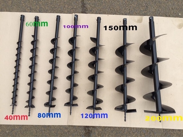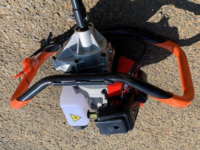 主な用途 ・単管パイプを立てる、柵を立てる、ビニールハウスを建てるための穴掘り ・農作物の種植え、球根植えの穴掘り ・苗木を植えるときの穴掘り ・仮設電柱を立てるときの穴掘り ・小規模な基礎工事のとき、水道管工事のときの穴掘り とにかく穴を掘る作業が手作業より大幅に短時間で楽に掘れます!(畑の場合、30センチ掘るのに約10秒)また、厚い氷に穴を開けることも可能です。 大きなハンドルが両サイドについていますので、機械も扱いやすく、またハンドルをひとつづつ持ち、2人で作業することも可能です。