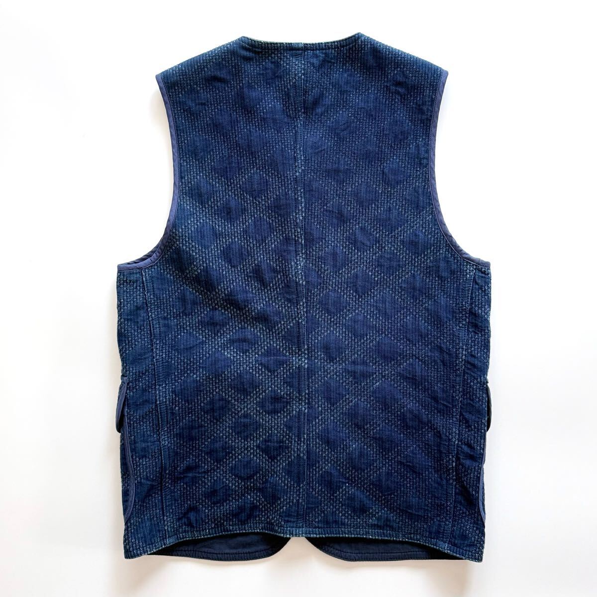青 ブルー 濃紺 ネイビー 藍染 刺子 デニム ノースリーブ ジレ 前開き 袖なし トップス レイヤード アメカジ メンズ 紳士服
