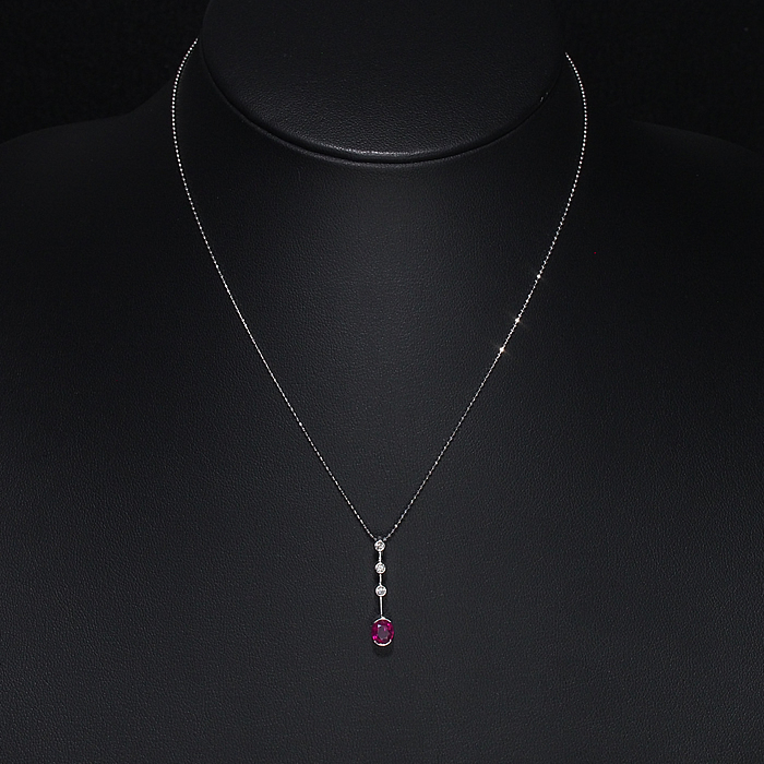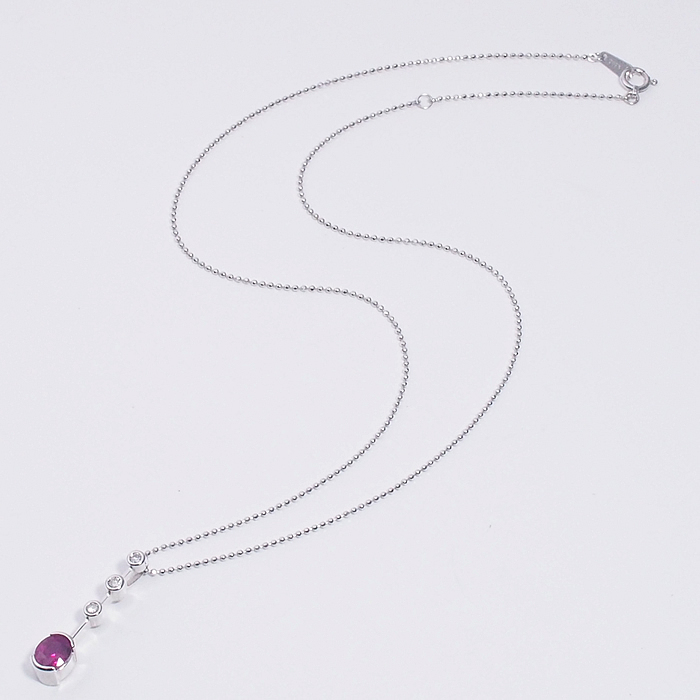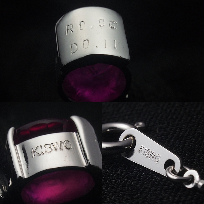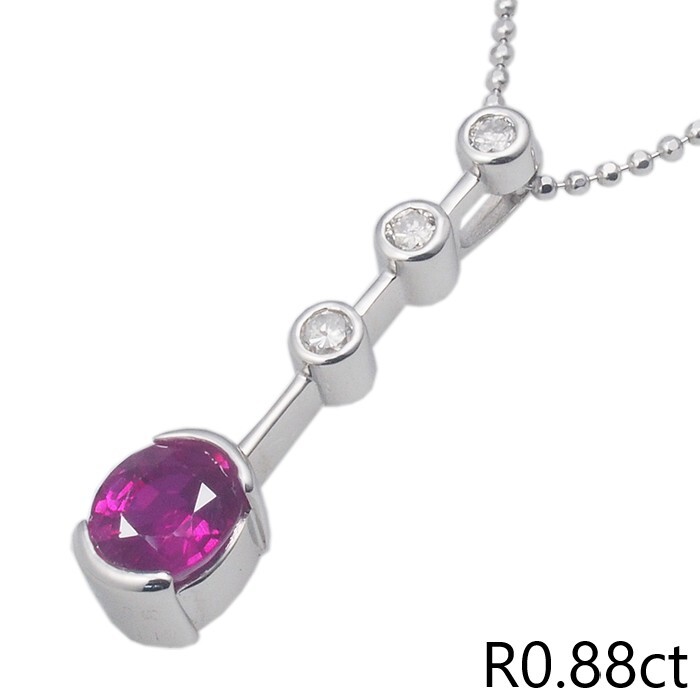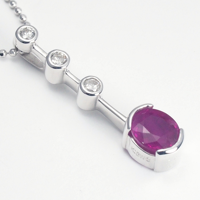 詳細:ノーブランド ルビー/0.88ct ダイヤ/0.11ct K18WG ネックレス 鑑別カード付き 仕上済