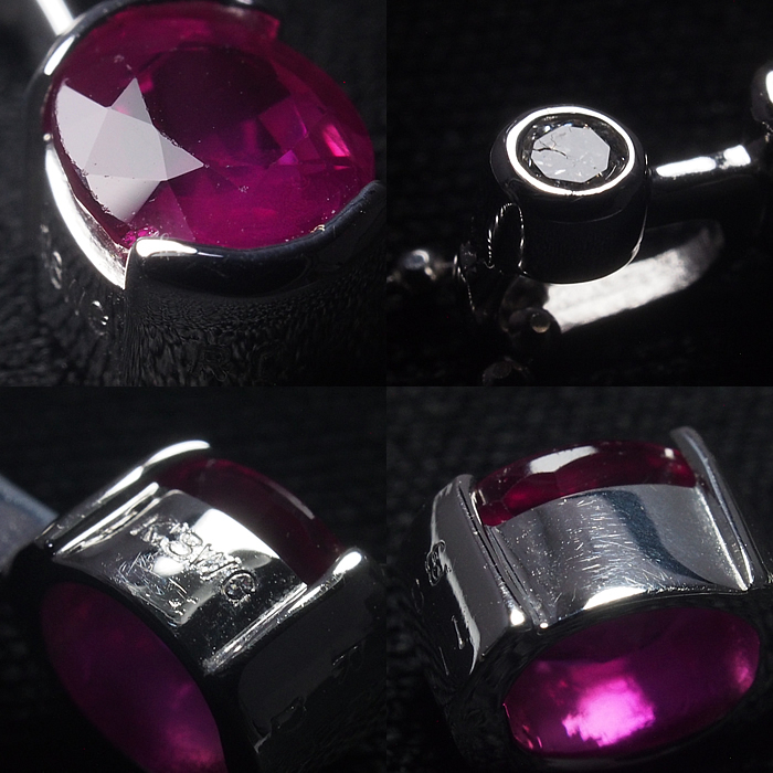 ルーペで見るとルビーとダイヤに微細な傷、地金部分にスレや小傷が見受けられますが、目立つような傷はなく、状態の良いお品物となっております。
