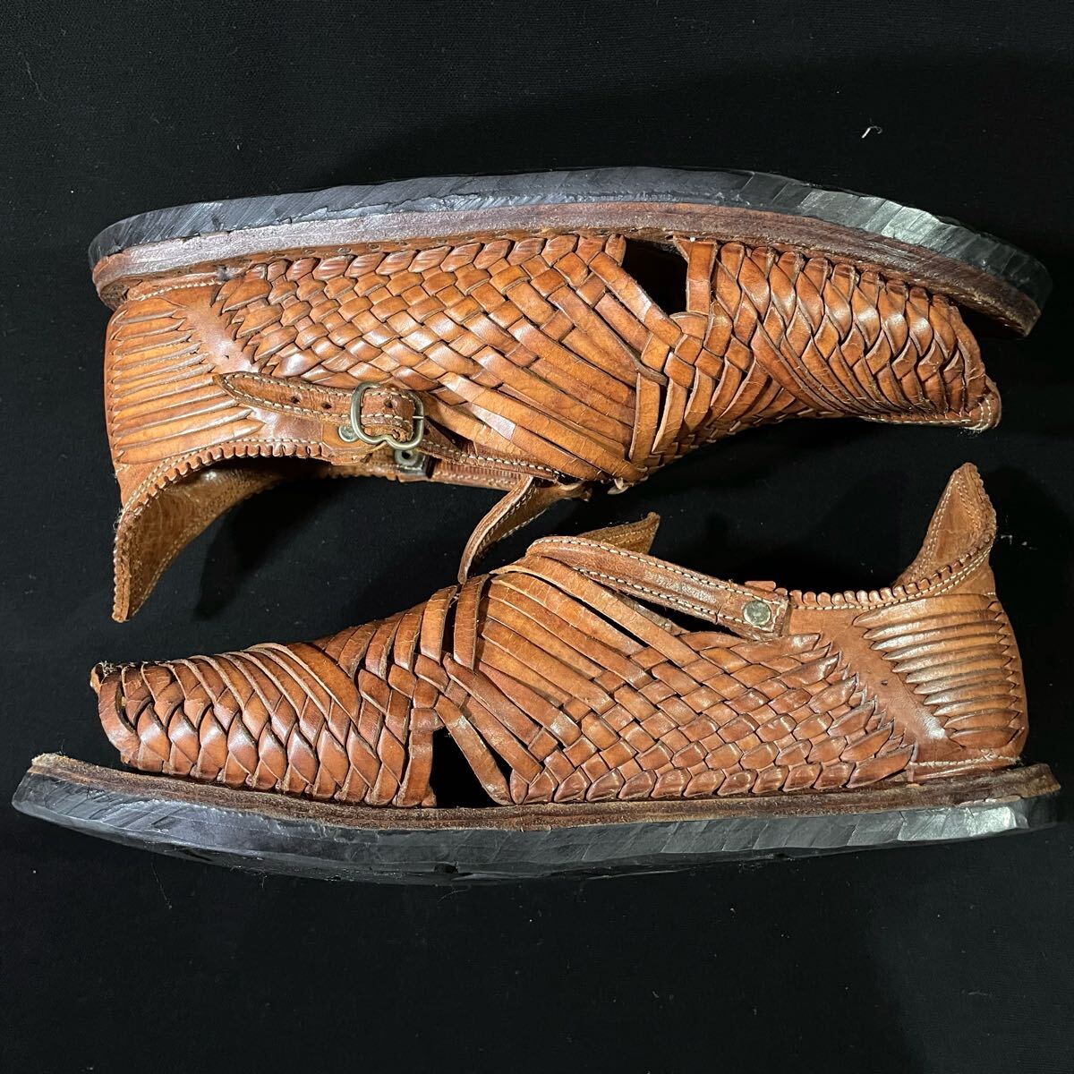 高品質! HUARACHE SANDAL 編み込み サドルレザー ワラチサンダル ハイクオリティー メキシカン メキシコ ハンドメイド ゴムソール 柳11285