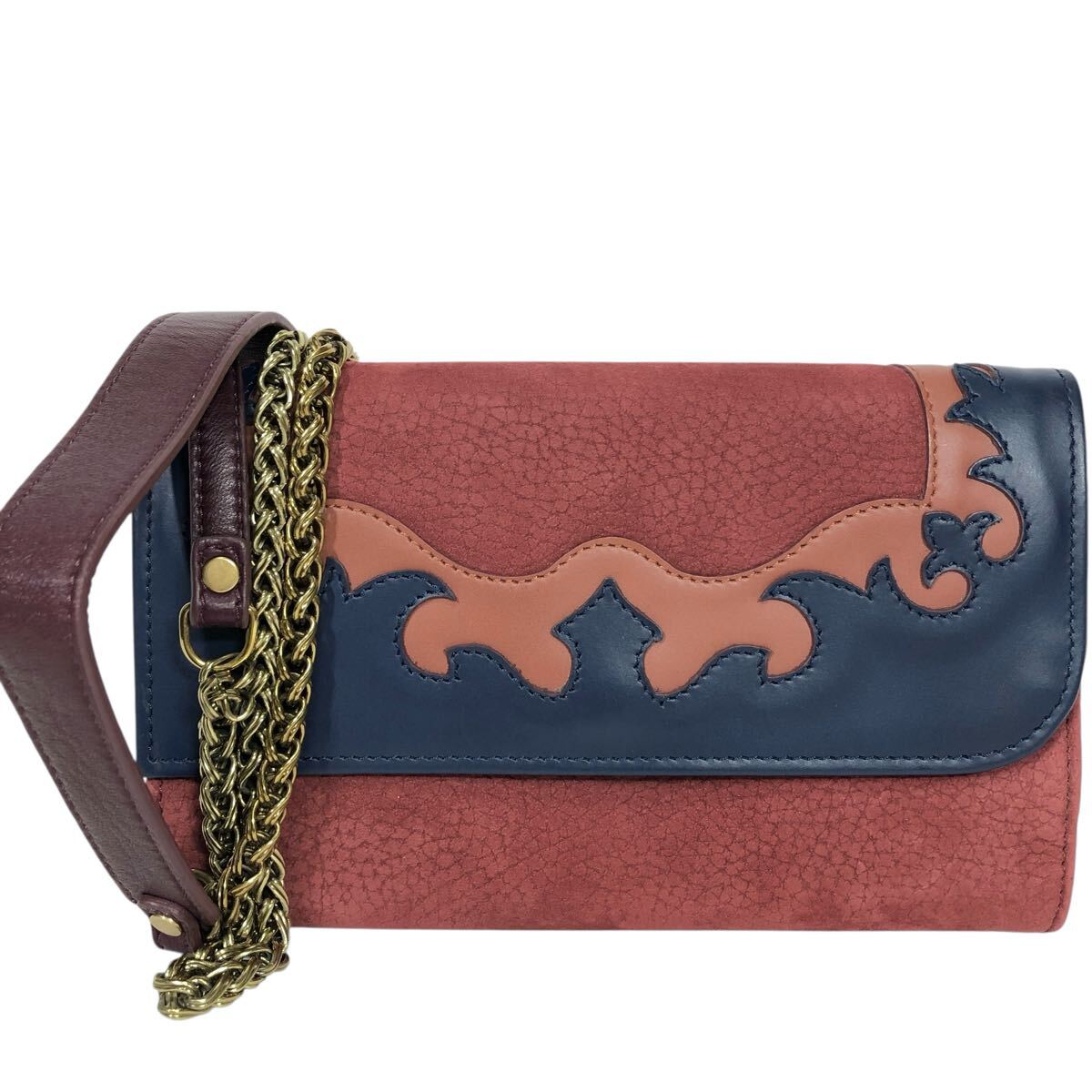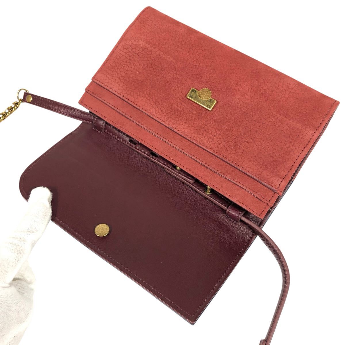 【ザネラート】本物 ZANELLATO チェーンショルダー 財布型 ショルダーバッグ 斜め掛け ポシェット 小銭入れ有 レザー×ヌバック レディース