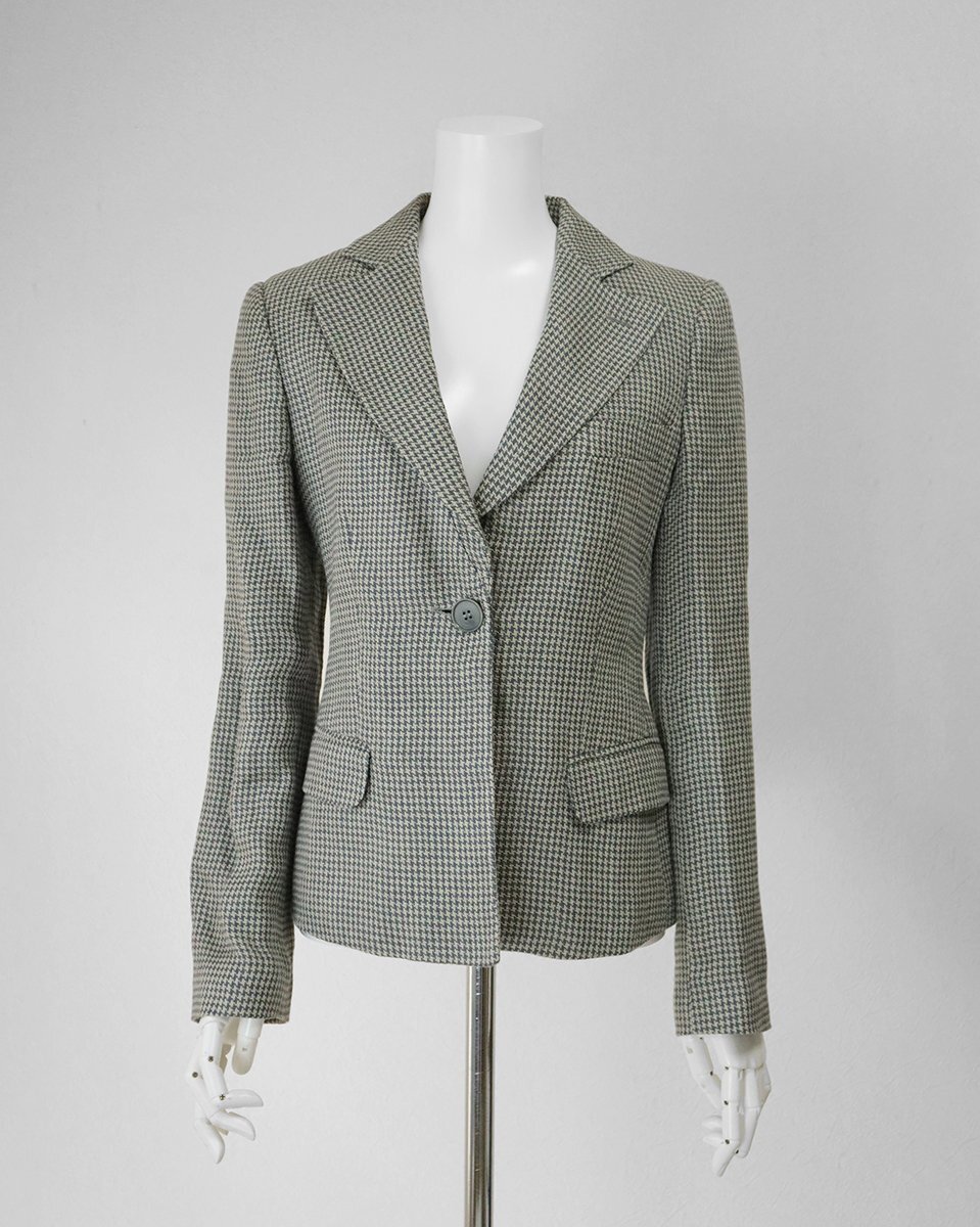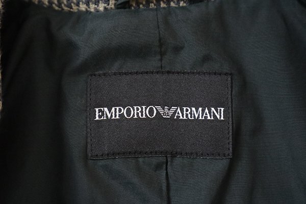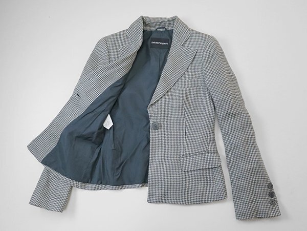 EMPORIO ARMANI ◆ 千鳥格子 リネン テーラードジャケット サイズ38 グレー ブレザー エンポリオ アルマーニ ◆GG13
