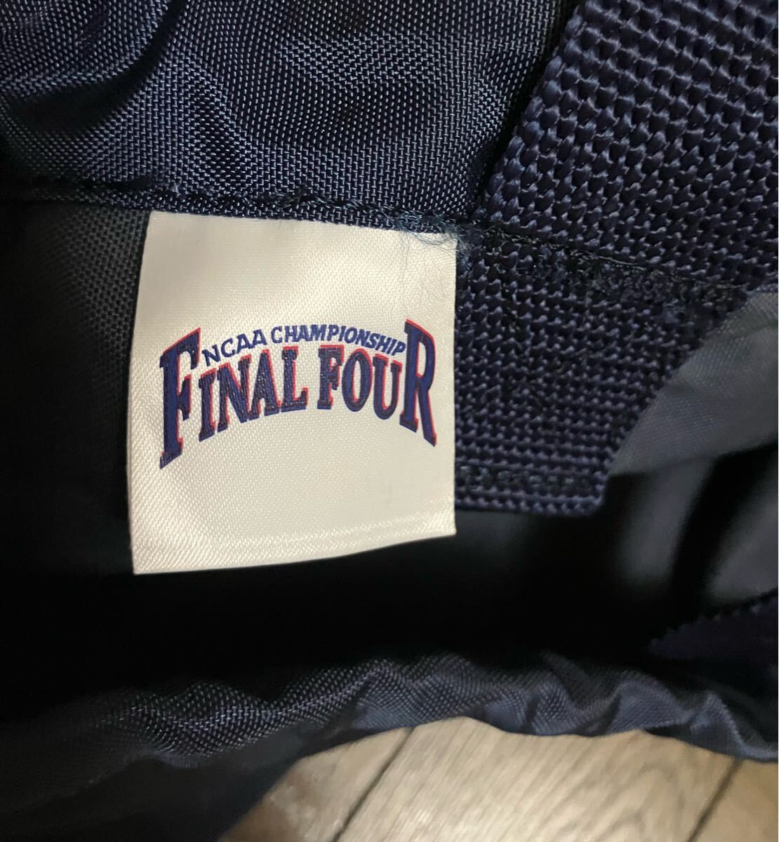 NCAA CHAMPIONSHIP FINAL FOURのロゴが施されたネイビーのドローストリングバッグ。