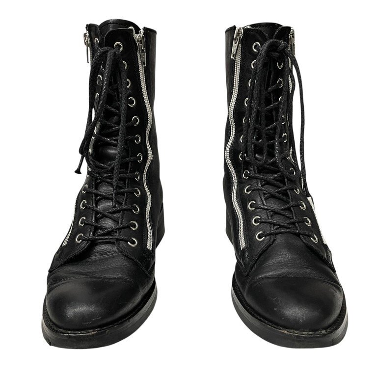 Yohji Yamamoto Femme 【men4791I】 15AW フロントダブルジップレザーレースアップブーツ Archive LOOK36 シューズ レディース AR | |