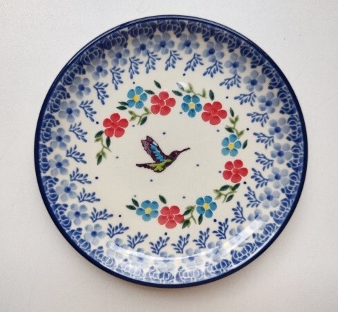 【在庫2枚】x818 ポーランド陶器 15.5cmプレート/皿 赤&水色花 鳥 ポーリッシュポタリー 食器