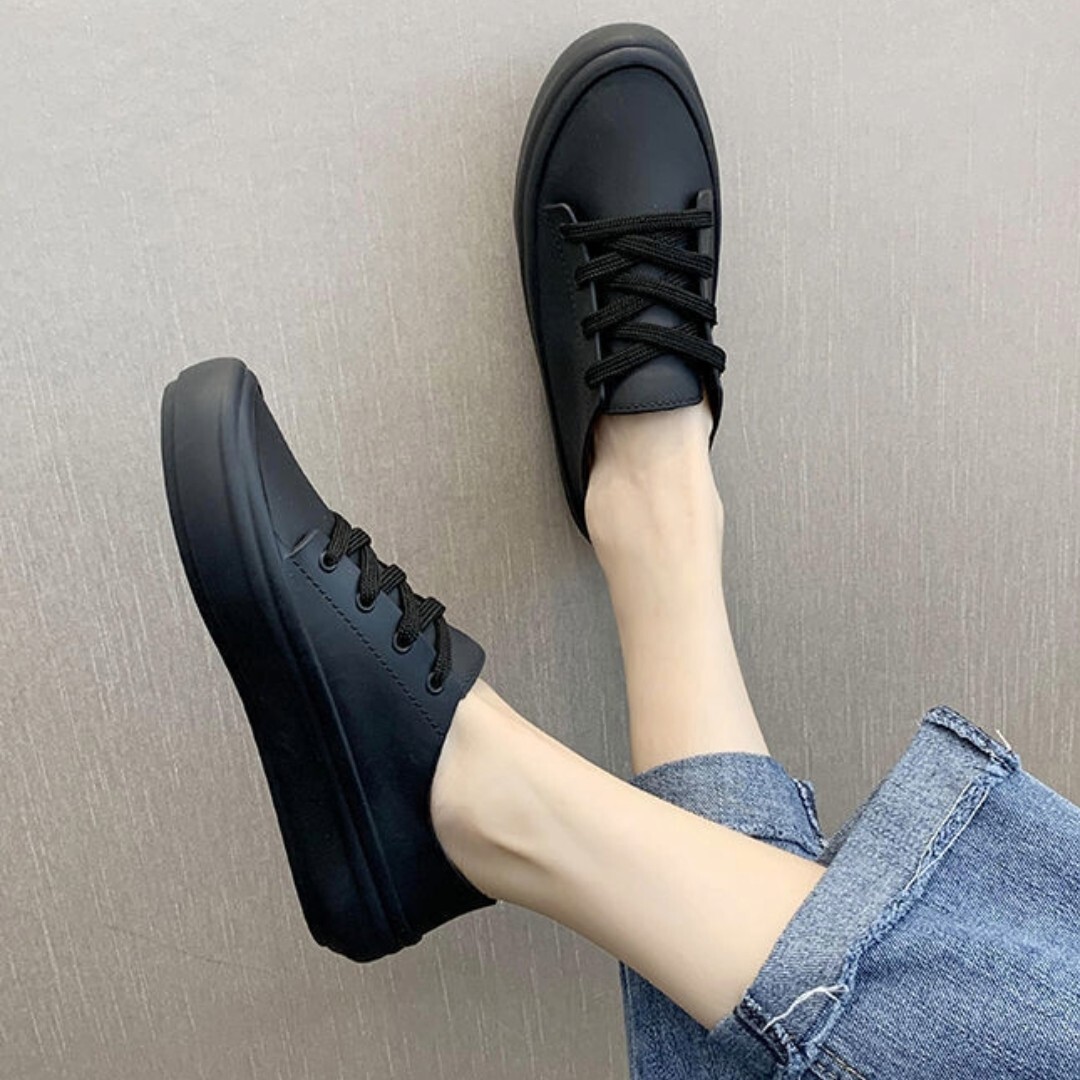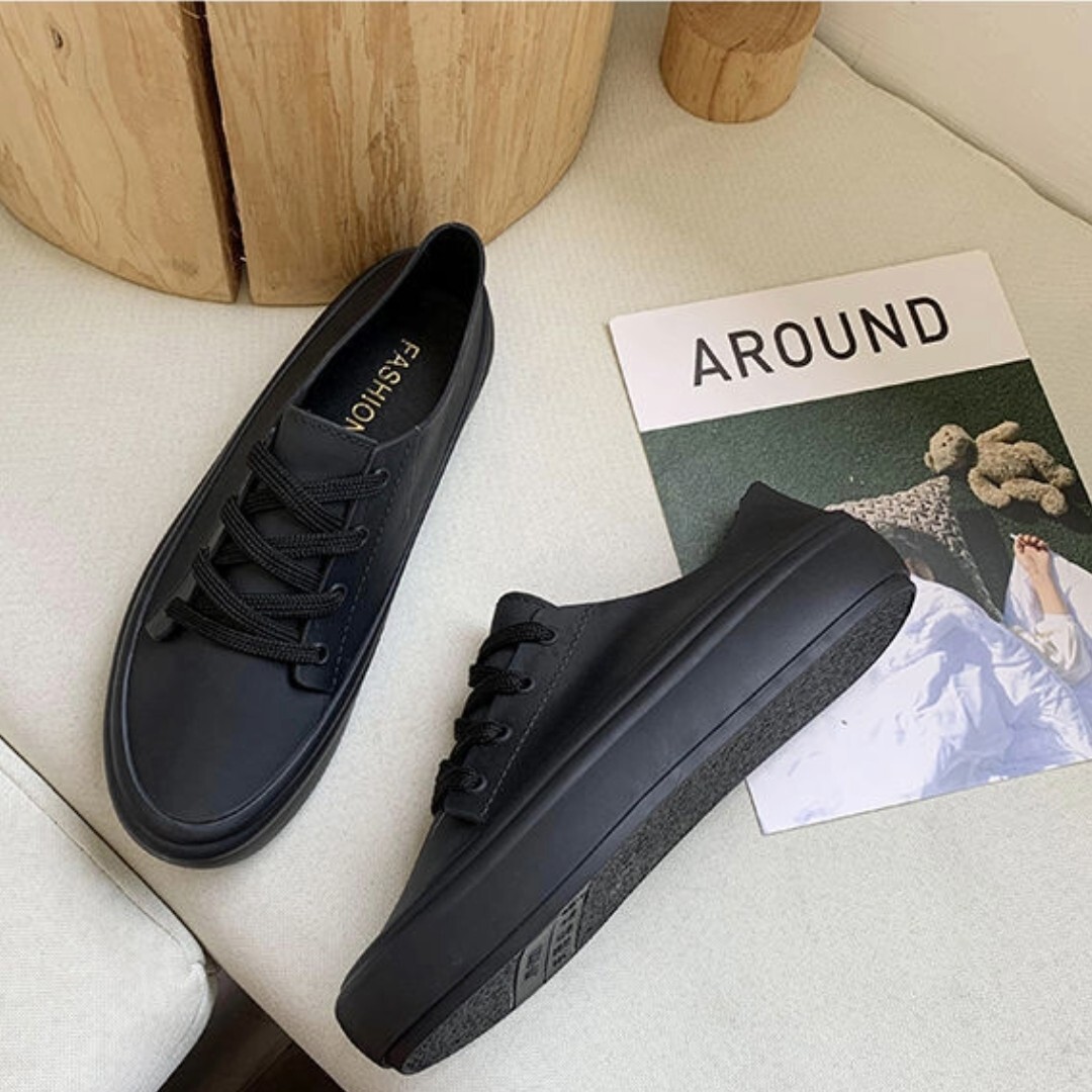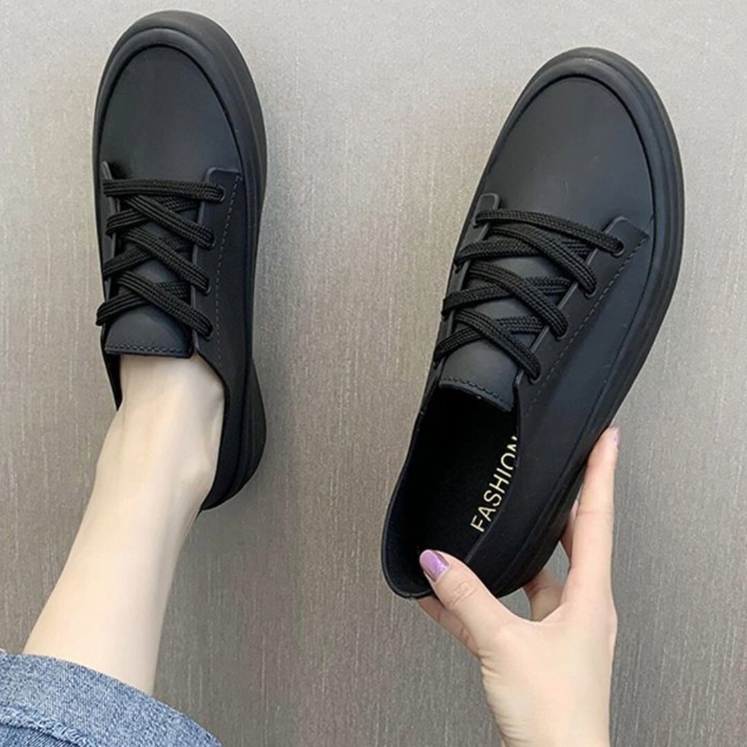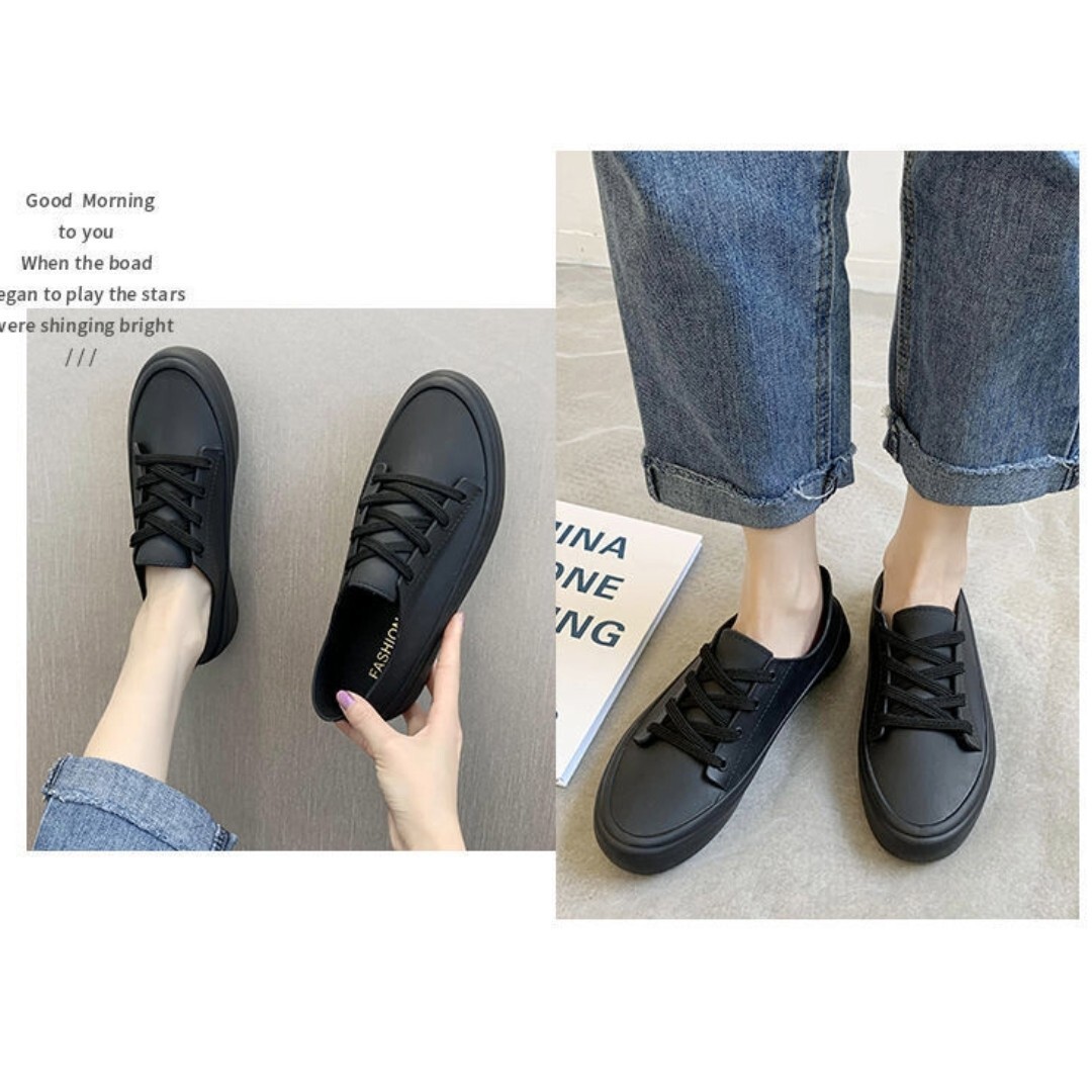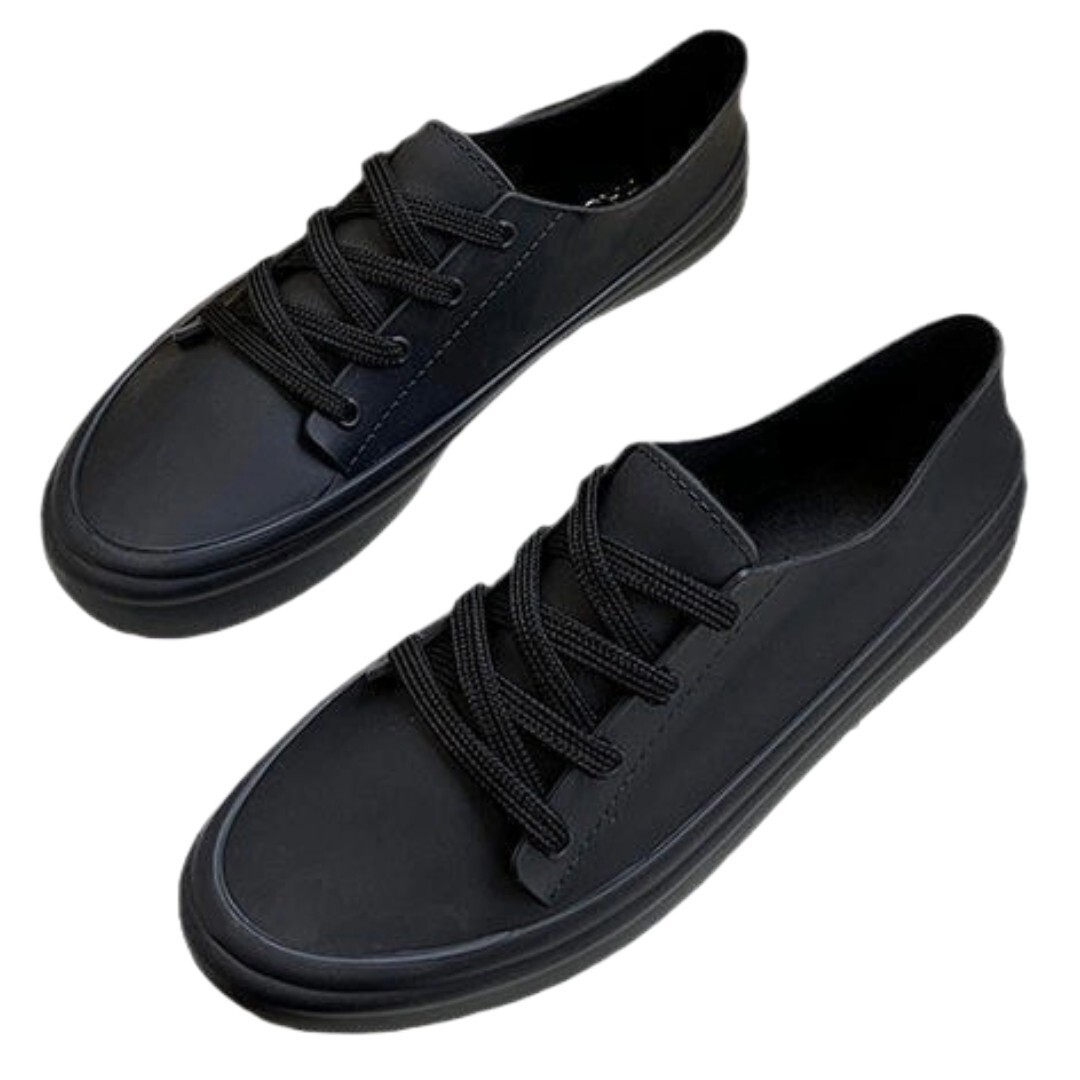 s252 黒【23cm】洗える ゴム製 レインシューズ 防水 スニーカー レディース 女性用 婦人用 紐付きデザイン フラット ヒールなし