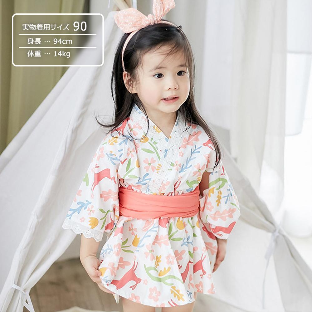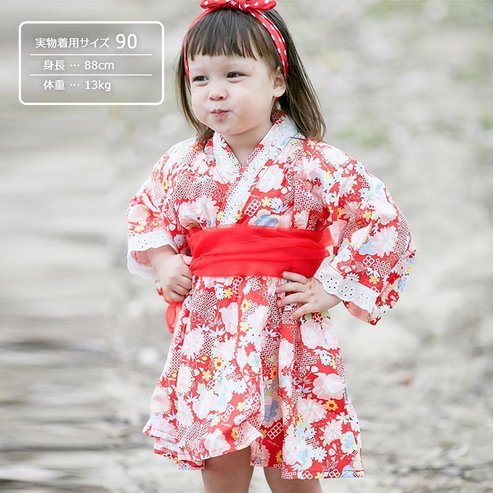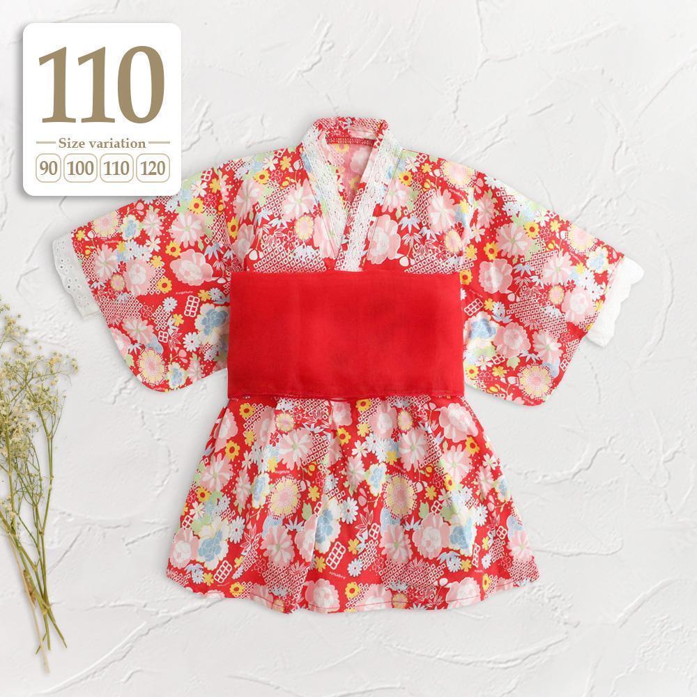 新品未使用 110cm レッド〔#BM浴衣ワンピース〕浴衣ドレス 兵児帯 2点セット 子供 ベビー キッズ 女の子 七夕 お祭り 花火大会 ピンク