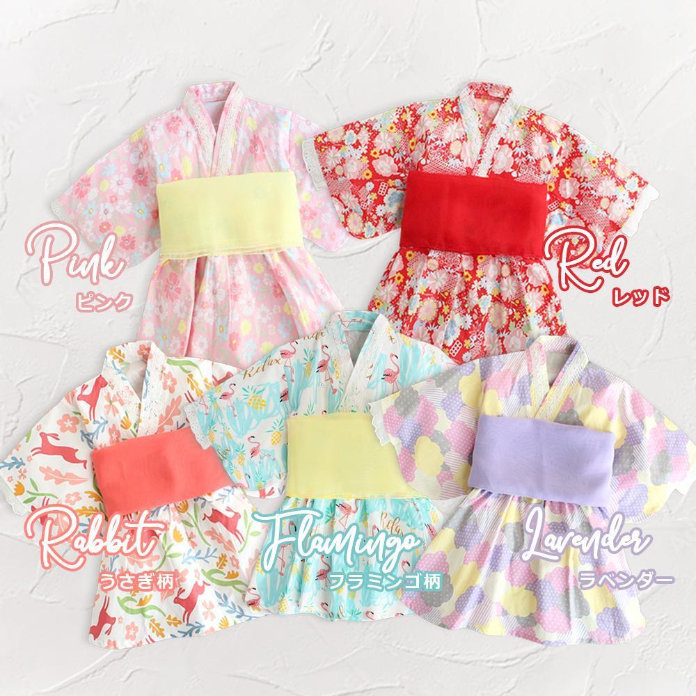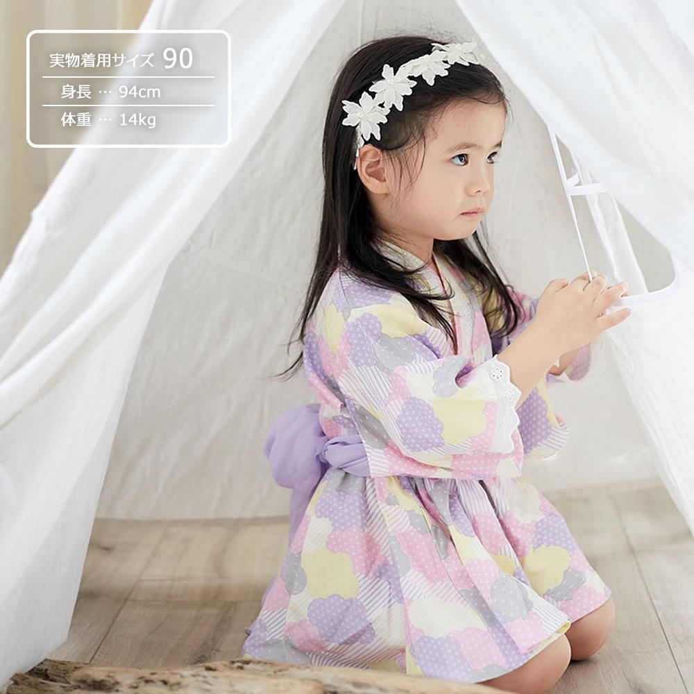 夏祭りや花火大会、七夕にピッタリな浴衣ワンピース&帯の2点セット。ワンピースだから着付け不要で動きやすく着崩れしにくい♪衿元と袖にはレースが付いて、帯はボリュームたっぷりでかわいいです!