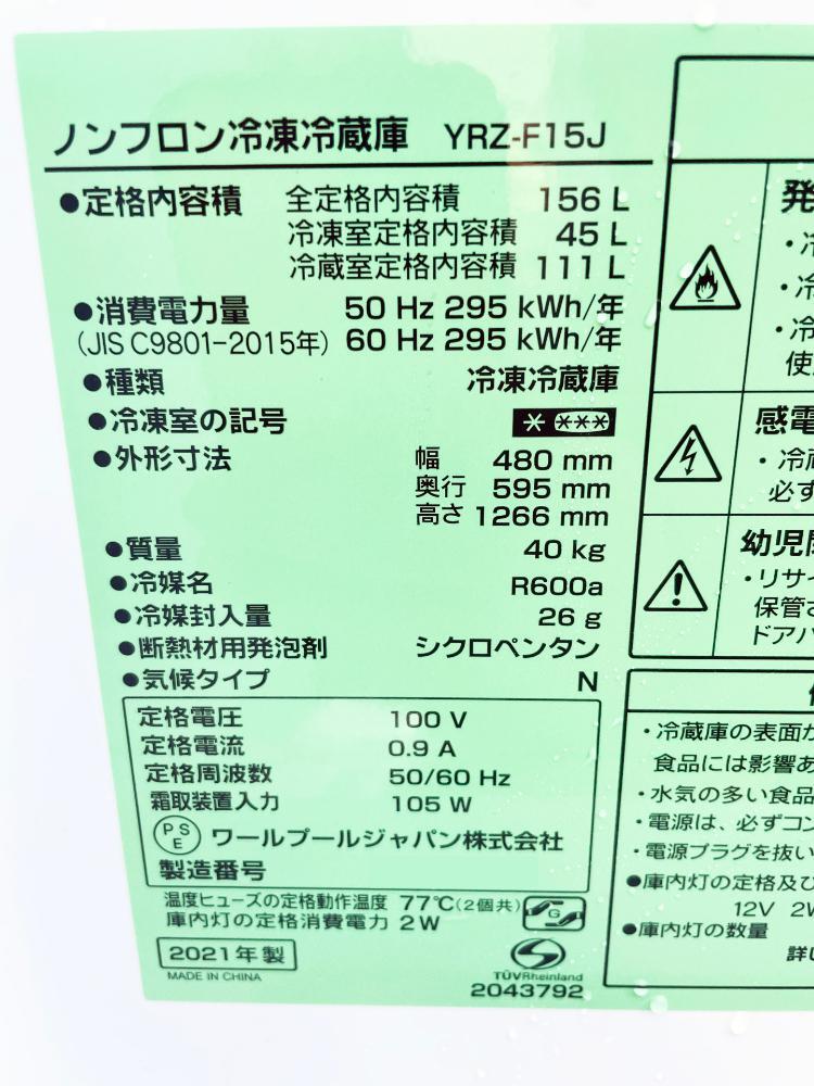 ★引き取りの大歓迎!! ご本人様が直接引取の場合、2,000円値引きます!! 是非お越しください♪ ★お取り置きOK!★ 3ヶ月間までは、無料でお取り置きできます! もしそれ以上の期間をご希望の方は、事前にご相談ください♪ ◆送料無料★2021年製★ 中古★YAMADA 156L フロント庫内LED灯★大容量ドアポケット!2ドア冷蔵庫【◆YRZ-F15J】◆B43 ※棚・ポケットなど、写真に写しているものが全てです。 ◆冷蔵庫に関して、動作確認は、しっかり長時間(2~3日間)行っており、冷えも良好で問題ございません。 ◆他に多数出品しており掲載写真をご覧いただければわかりますが、 細かすぎるかもしれませんが、私が気が付いたキズ等に関して、できる限りアップ写真を掲載しております。 こちらの商品に関しては、私が見る限りで申し訳ございませんが、多少のキズ等ありますが、気になるほどでもなく、全体的には、超美品だと思いますが、中古品の為、キズ・汚れ等あると思って頂き、気になる方はご遠慮ください。是非、ご検討をお願い致します。 【商品説明】 yselect YRZF15J ヤマダオリジナル 2ドア冷蔵庫 (156L・右開き) ●フロント庫内LED灯 食品の影になりにくいので冷蔵庫内が明るく見えます。 ●汚れがふき取りやすいガラス棚 ガラス製なのでニオイうつりも気になりません。 ●大容量ドアポケット ドリンク類がたっぷり入ります。 ●大きめ冷凍室 便利な冷凍食品がフルに活用できる。製氷皿・貯氷ケースは取り外せ、自由なレイアウトが可能です。 【仕様】 冷却方式:ファン式 年間消費電力量:295kWh/年 定格電圧・周波数:100V 50/60Hz 電動機定格消費電力:電動機:57/57W 省エネ達成率(目標年度2021年度):103% 冷媒種類:R600A 騒音値:約24dB 外形寸法:幅480×奥行き595×高さ1266mm 本体質量:40kg 総容量:156L 冷凍室容量:45L (32L) 冷蔵室容量:111L(96L)(うちフリートレー(17L)) 電源コード長:1.8m ドア枚数:2ドア ドア開閉タイプ:右 据え付け必要寸法:幅490×奥行き645×高さ1446mm 年間電気代(円/年):7,965円 2021年製 詳しくはこちら↓ ◆動作保証しておりますので、商品到着後3日以内に落札後の商品お取引画面から、動作不良等の内容をメッセージ連絡頂きましたら、初期不良対応は致します。但し、電源が入らない、全く稼働しない致命的な不具合に限ります。 ◆簡易清掃を行っております。 当方としては、清掃を行っておりますが、あえて簡易清掃と言わさせていただきます。 神経質な方や、新品同等のレベルをお求めの方、気になる方はご遠慮ください。 ◆その他、素人なりに慎重に確認したつもりですが、中古品の為、私の気づかない傷や汚れ等あるかもしれません。 専門的・神経質な細かな点までの対応はできませんので、基本的にノークレーム・ノーリターンでお願いします。 ※下記内容を最後まで、必ずお読み下さい。 ご入札・落札の際は、ご了承頂いたものとみなします。 注意事項★☆★☆★☆★☆★☆★☆★☆★☆★☆★☆★☆★☆★☆★☆ ●ヤフオクシステム改定に伴い、「 受取連絡 」が非常に重要となりますので、商品到着後24時間以内に受取連絡された方のみ、初期不良対応・保証対象とさせていただきます。 ●私としてで申し訳ございませんが、できる限り誠意ある対応を心がけているつもりですが、顔の見れないお取引が故に色々な方がおり、また人それぞれ感性など異なりますので、ところどころ、あえてと記載させて頂いております。 ●初期不良対応・保証に関して、お届け先へ商品到着後、3日以内が保証対象となります。 ●商品が届いたご住所で動作確認等行ってください。移動しますと保証対象外になります。 ●万が一、商品に不具合等がございましたら、落札商品お取引画面から具体的な不具合等の内容をメッセージして下さい。商品到着後、3日以内メッセージを頂けていない場合は、保証対象外となりますので、必ずお願いいたします。 ●家電に関しては、あえて、電源が入らない・全く稼働しないなどの致命的な不具合、家具類など電気を使わないものは、その物として成り立たない物に限らさせていただきます。 ●動作確認・状態確認が終わるまで、梱包材・運送会社の伝票など必ず保管してください。保管されていない場合、初期不良対応・保証ができなくなる場合がございます。 ●運送事故の恐れがあった場合、所有権がお客様側に移っておりますので、お客様にて運送会社とのご対応をしていただくことになりますが、穏やかなお話合いができる方に関しては、不慣れかと思いますので、こちらもできる限りのご協力をさせていただきます。 ●当方は、運送会社が起こしたトラブル・遅延に関しては、一切の責任を負いません。 ●商品に不具合等あっても、設置代金等、一切の責任を負いません。 ●勝ってな返品物に関しては、一切受け取りません。 ●未チェック品、現状品、ジャンク品、訳あり品として出品しております物は、一切の保証・初期不良対応・返品応対は行いません。また、キャンセルもお受け