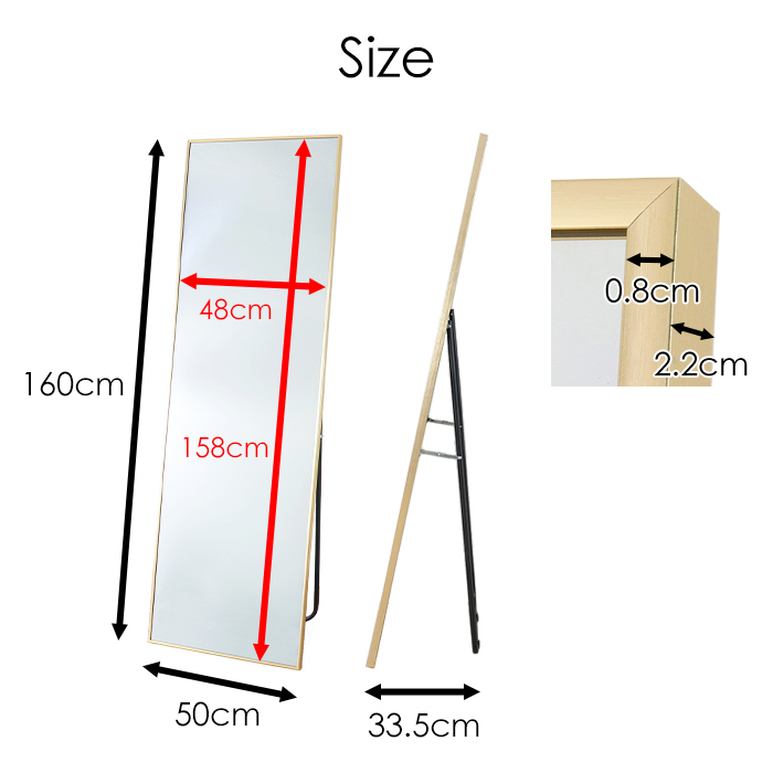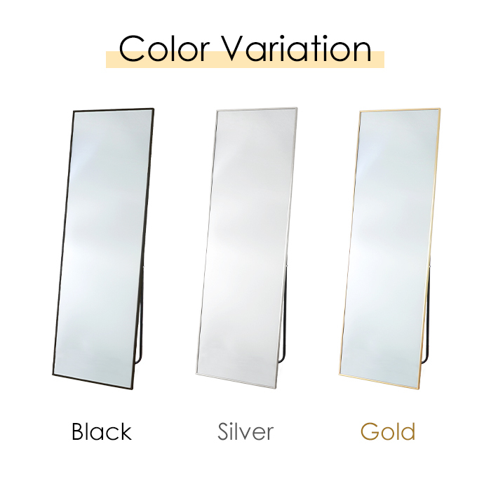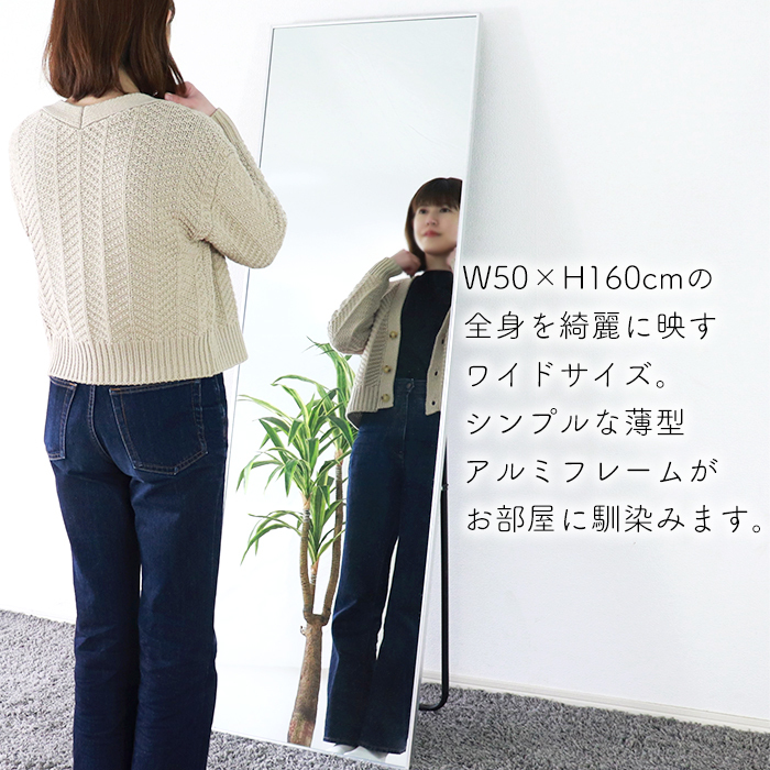 スタンドミラー 幅50 高さ160 全身鏡 姿見 飛散防止加工 細枠 シルバー MTISK-0105SV