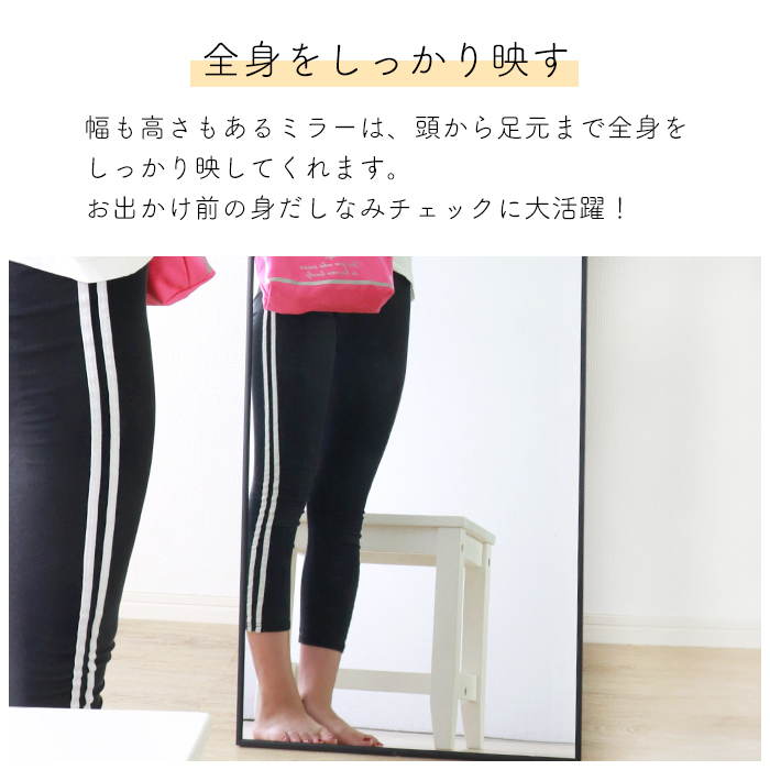 枠がスリムでミラー面が広いおしゃれなスタンドミラー。