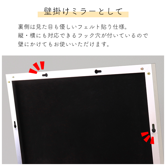 縦横のフック穴で壁掛けも可能。