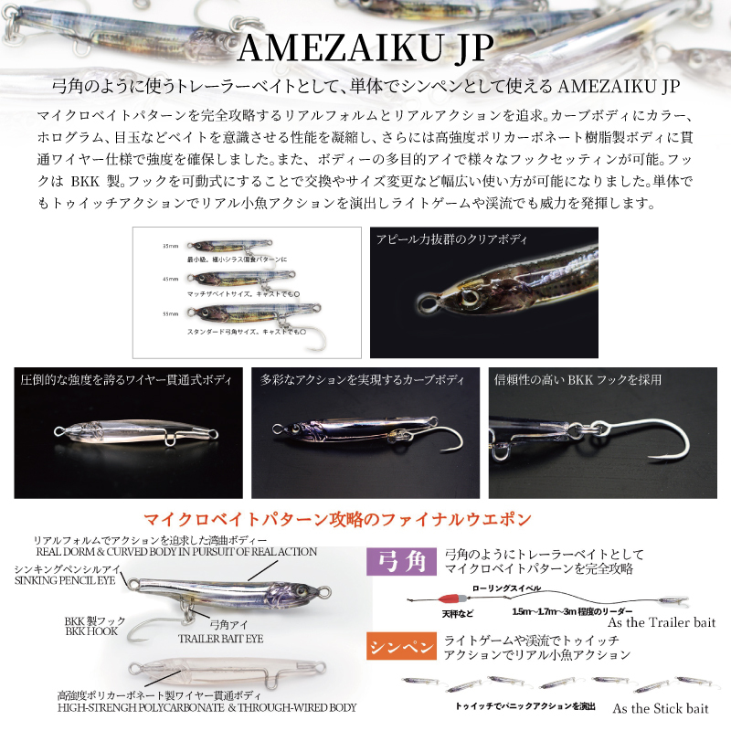 | 商品名 | ルアー アメザイクJP 45mm 1.7g 06 UV NINJYA BLACK マッチザベイトサイズ 釣り メバル アジ トラウト ベイト型 フローティング キャスト リトルジャック AMEZAIKU JP | ||||||||||