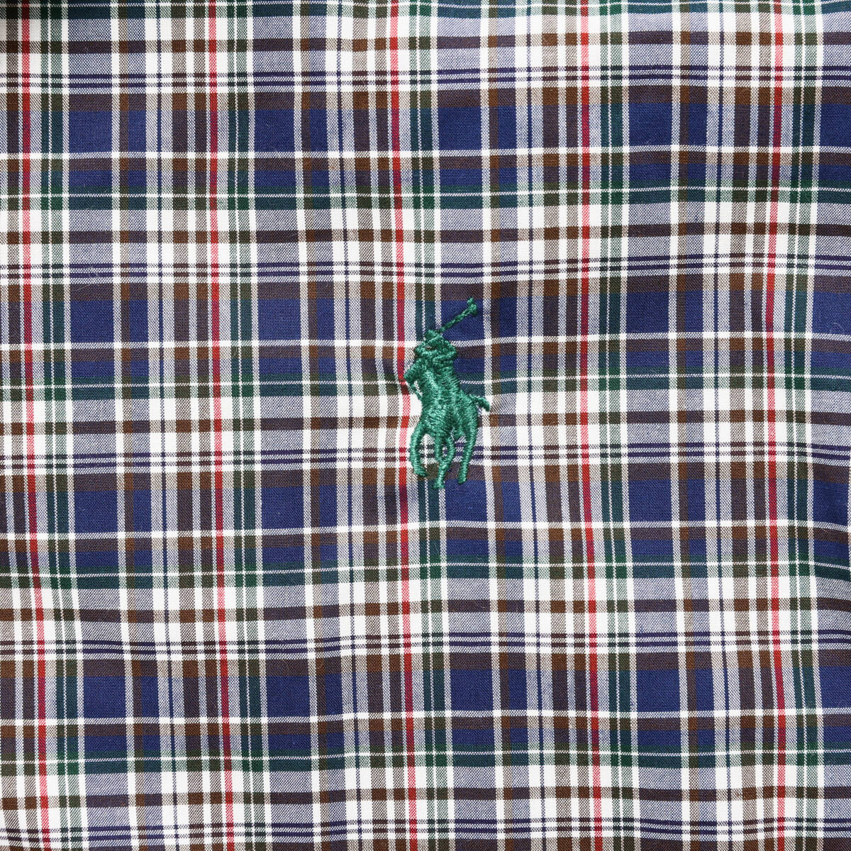 【ブランド】 Polo Ralph Lauren / ポロラルフローレン 【アイテム】 CUSTOM FIT チェック ボタンダウンシャツ 【商品説明】 アメリカで購入しました、ラルフローレンのチェック柄のボタンダウンシャツになります。 【カラー】 ネイビー×ブラウン×レッド 【コンディション】 特筆するようなダメージは見られません。 【サイズ】 サイズ:S 身幅:52cm 肩幅:45cm 着丈:77cm 袖丈:64cm | |||