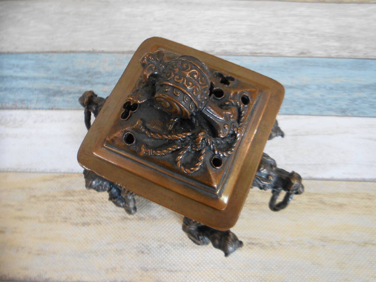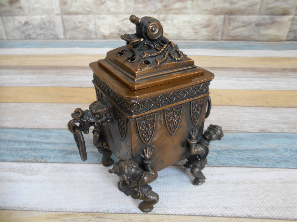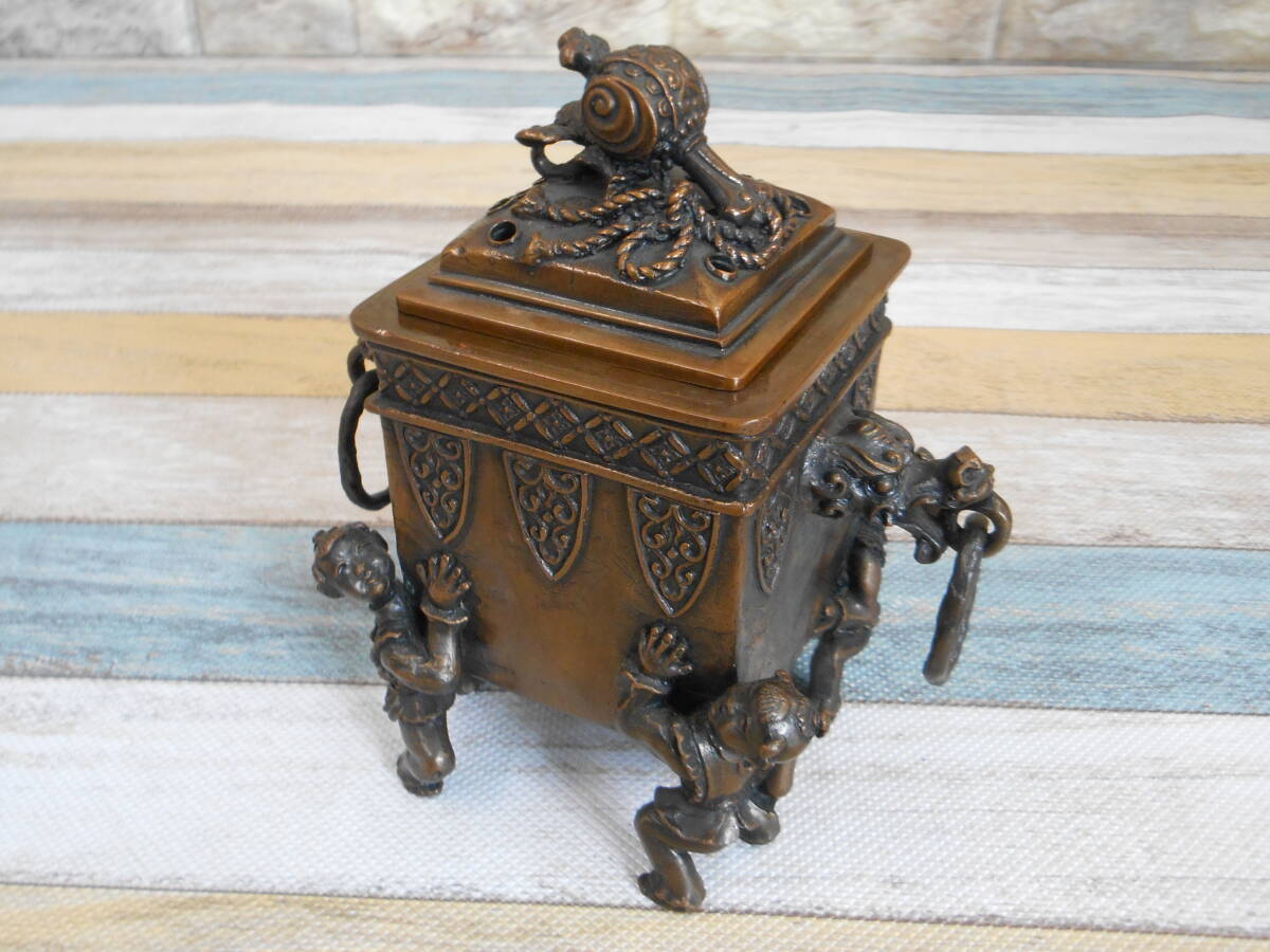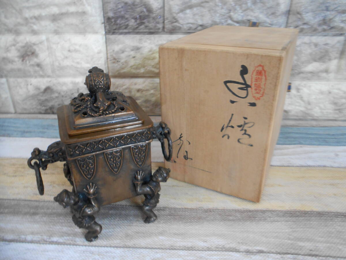 | ※送料は下記に記載しております。注意事項もございますので最後までご覧下さい。 中古【米田秀保造】鋳銅香炉 小槌霊芝摘龍耳遊環付唐子四足 (共箱あり)の出品です。 未使用品と思われますが確約はできませんので中古品として出品させて頂きます。 共箱には汚れがございますが、本体は綺麗な状態を保っております。 画像の物が全てとなります。 ●サイズ 高さ約:15.5㎝×横幅約:14.8㎝ ●総重量 約:1,700g 西濃運輸で発送する際、伝票入力時に電話番号が必須事項となります。 恐れ入りますが電話番号をメッセージ欄よりお知らせお願い致します。 |