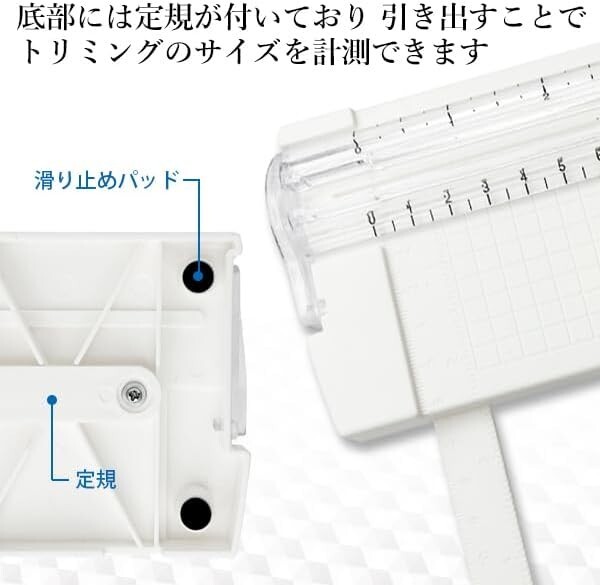 底部には定規が付いており、引き出すことでトリミングのサイズを計測出来ます。