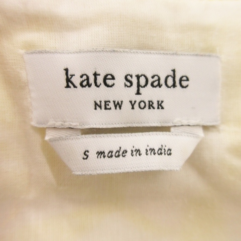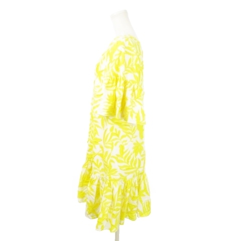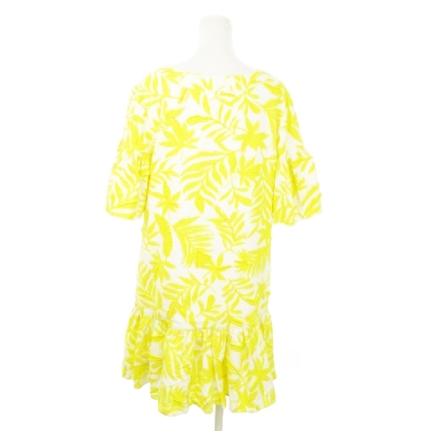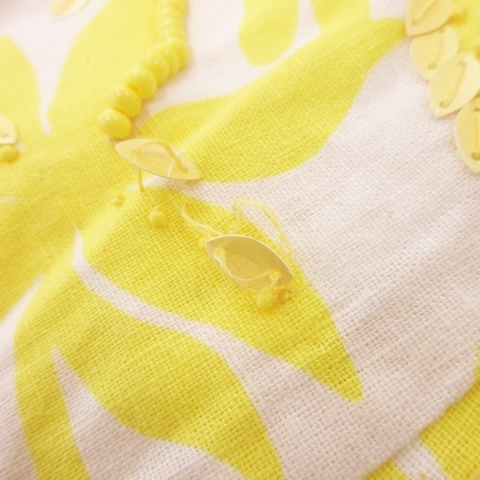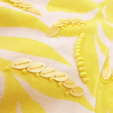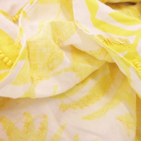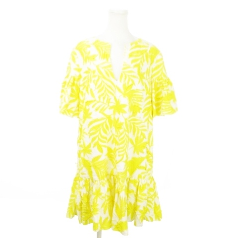 ケイトスペード Tropical Foliage Embellished Tunic ミニワンピース 半袖 麻 リネン ボタニカル 総柄 スパンコール ビーズ S 黄