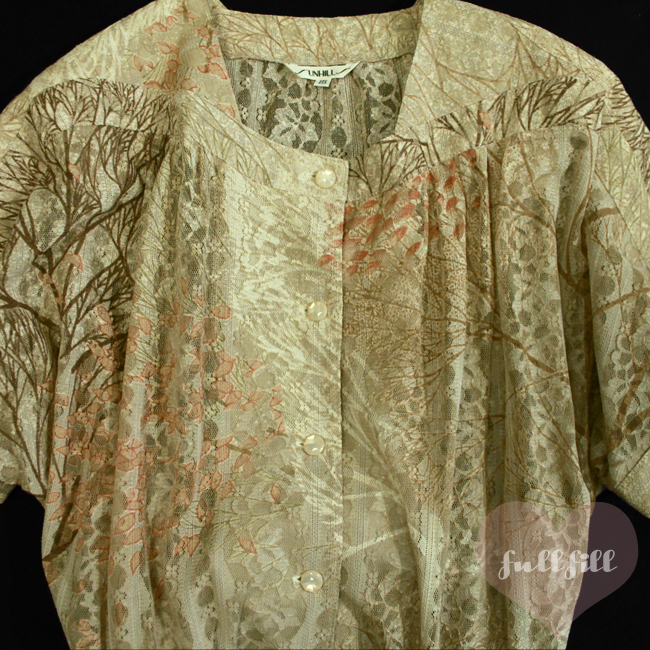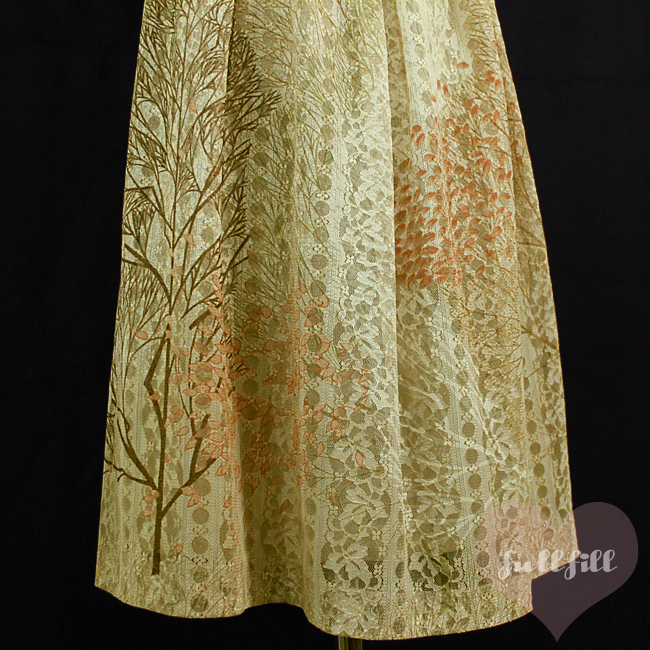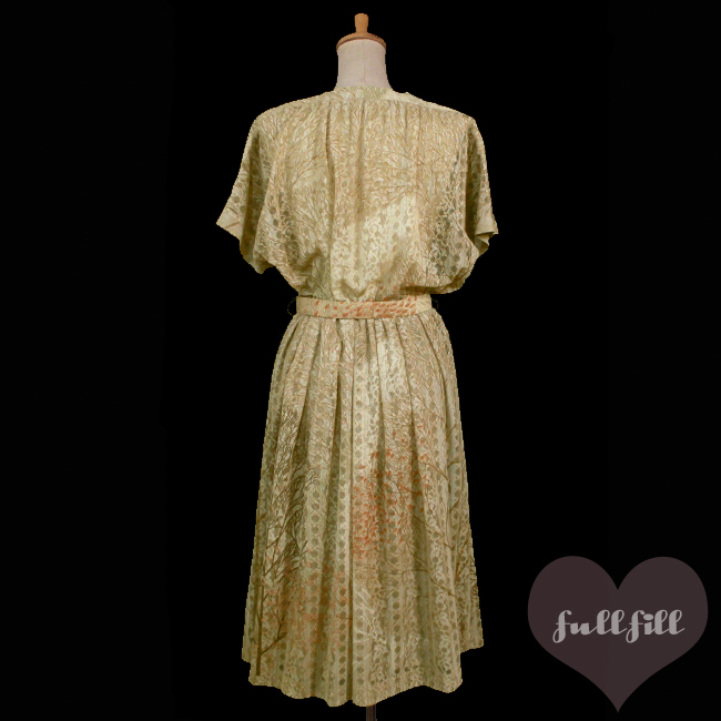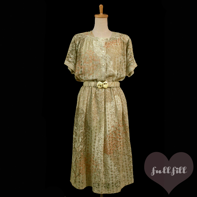 古着 ワンピース 昭和 レトロ ベルト付き 総レース ビンテージ ヴィンテージ used レディース古着 透かし ボタニカル 草木 半袖ワンピ