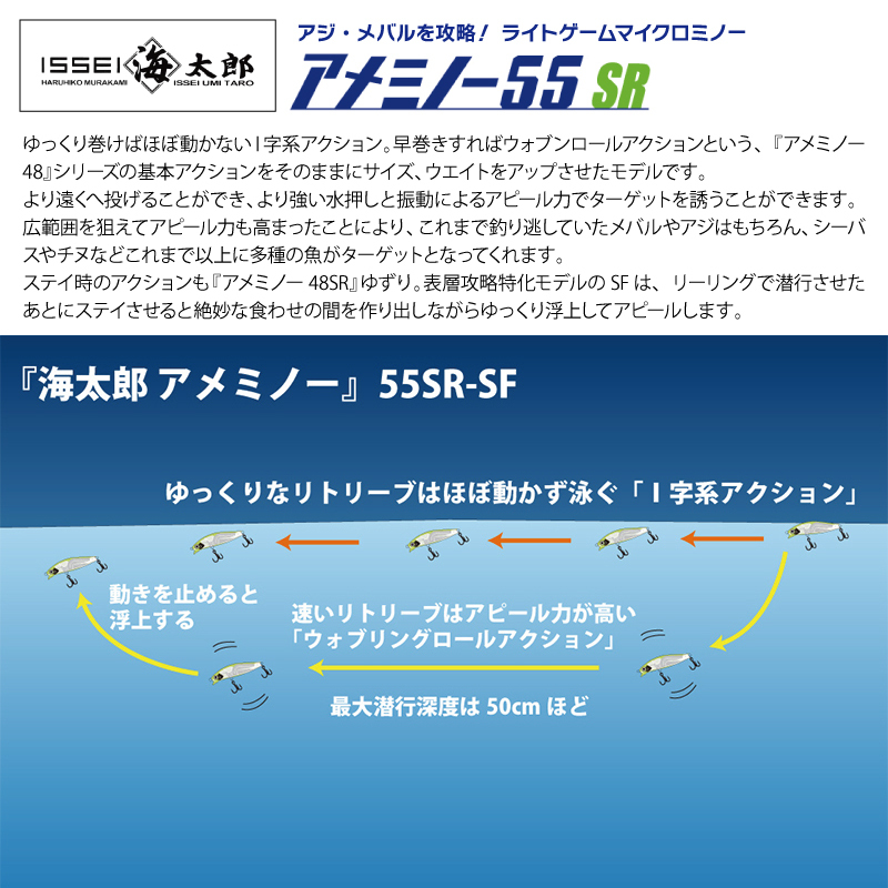 | 商品名 | アメミノー 55SR-SF 釣り 55mm 004 チャートバックテールグロー ライトゲーム専用 マイクロミノー サイズ ウエイト アップ ルアー ミノー issei イッセイ 海太郎 | ||||||||||