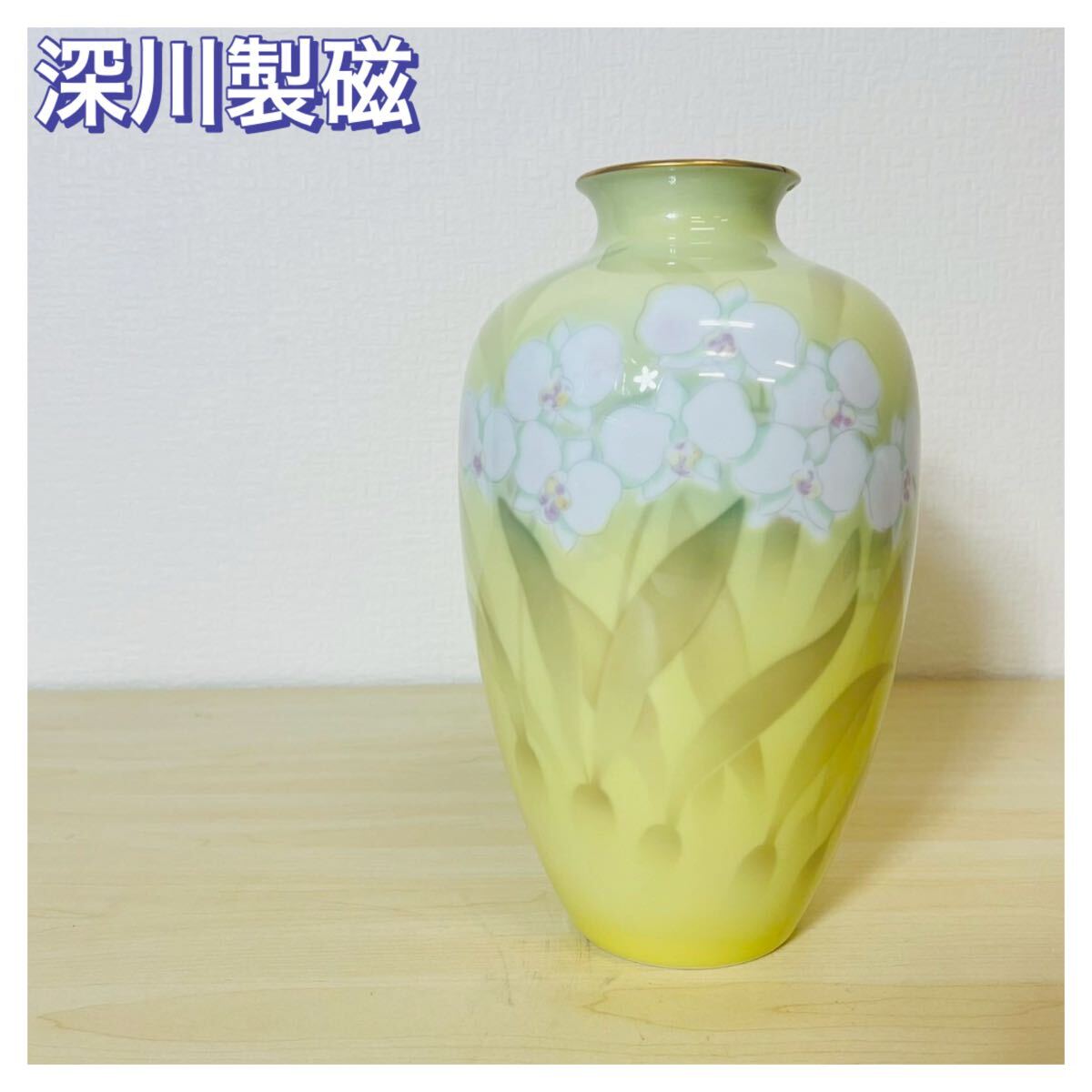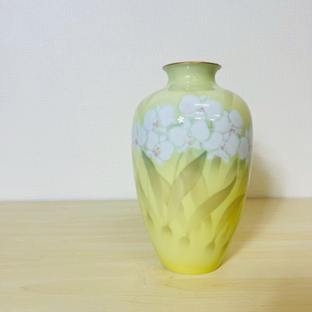 深川製磁 胡蝶蘭 花瓶 花器 金彩 フラワーベース 色彩絵磁