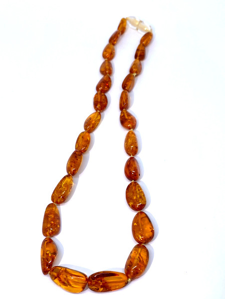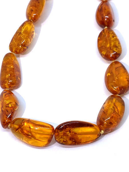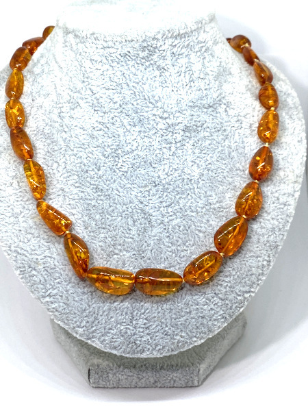 【即決】 琥珀 ネックレス コハク コパル アンバー ジュエリー 12.5×7㎜~18.5×10㎜ 全長42.0㎝ 14.3g