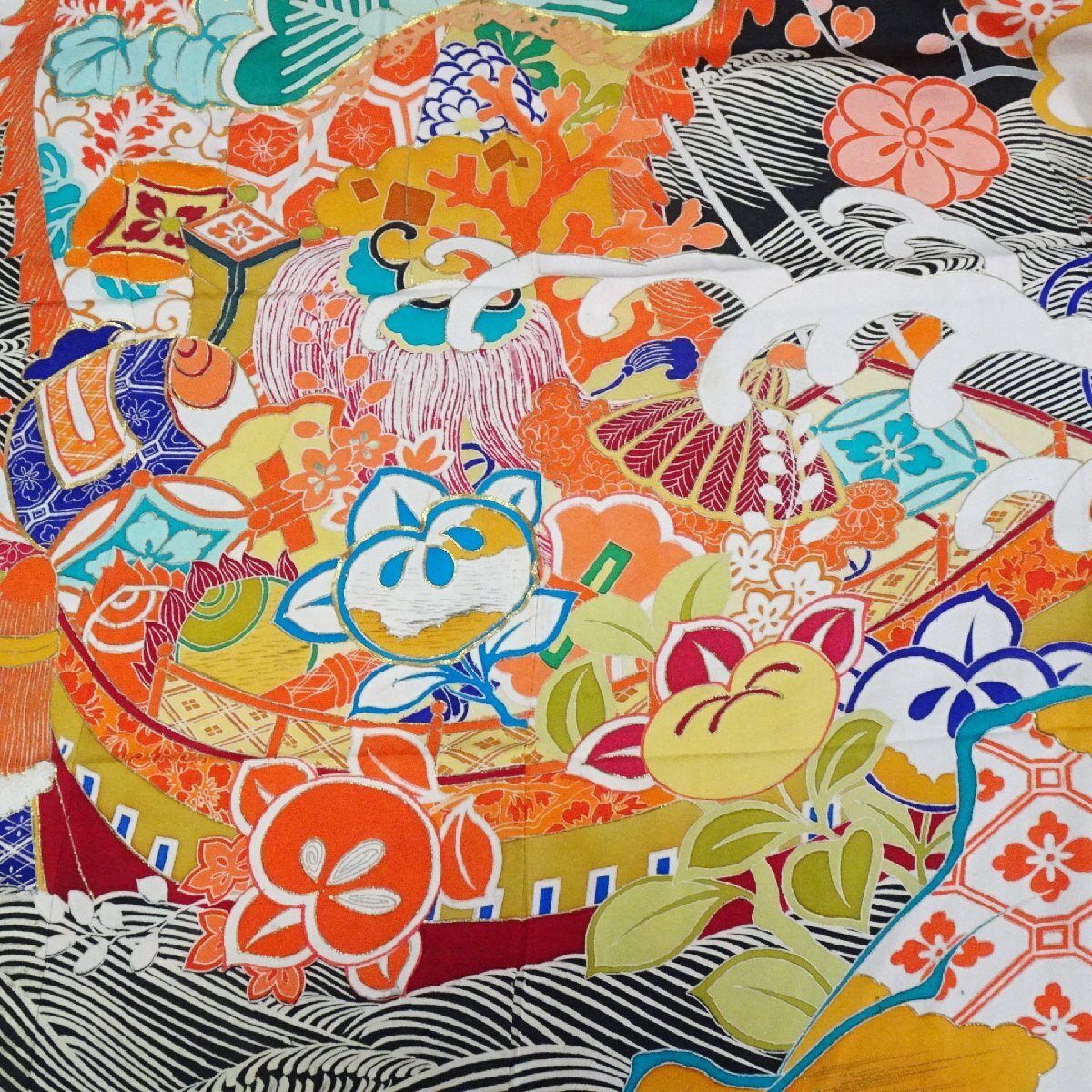アンティーク 振袖 古典柄 宝船 襦袢付き