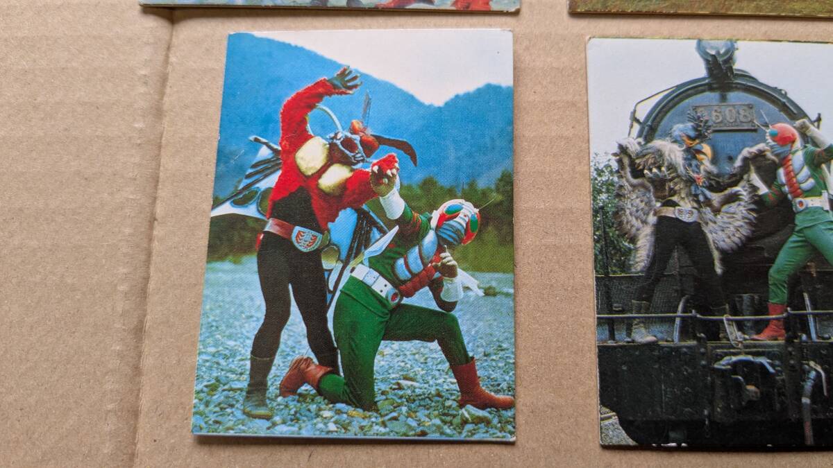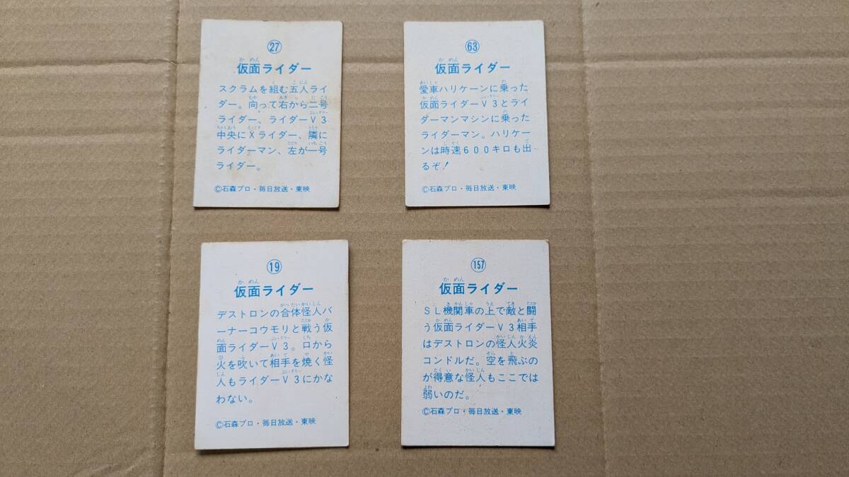 ★★★実家整理☆当時物☆旧カルビー☆仮面ライダーカード☆4枚セット☆19/27/63/157☆毎日放送☆東映☆石森プロ☆汚れあり☆送料込★★★