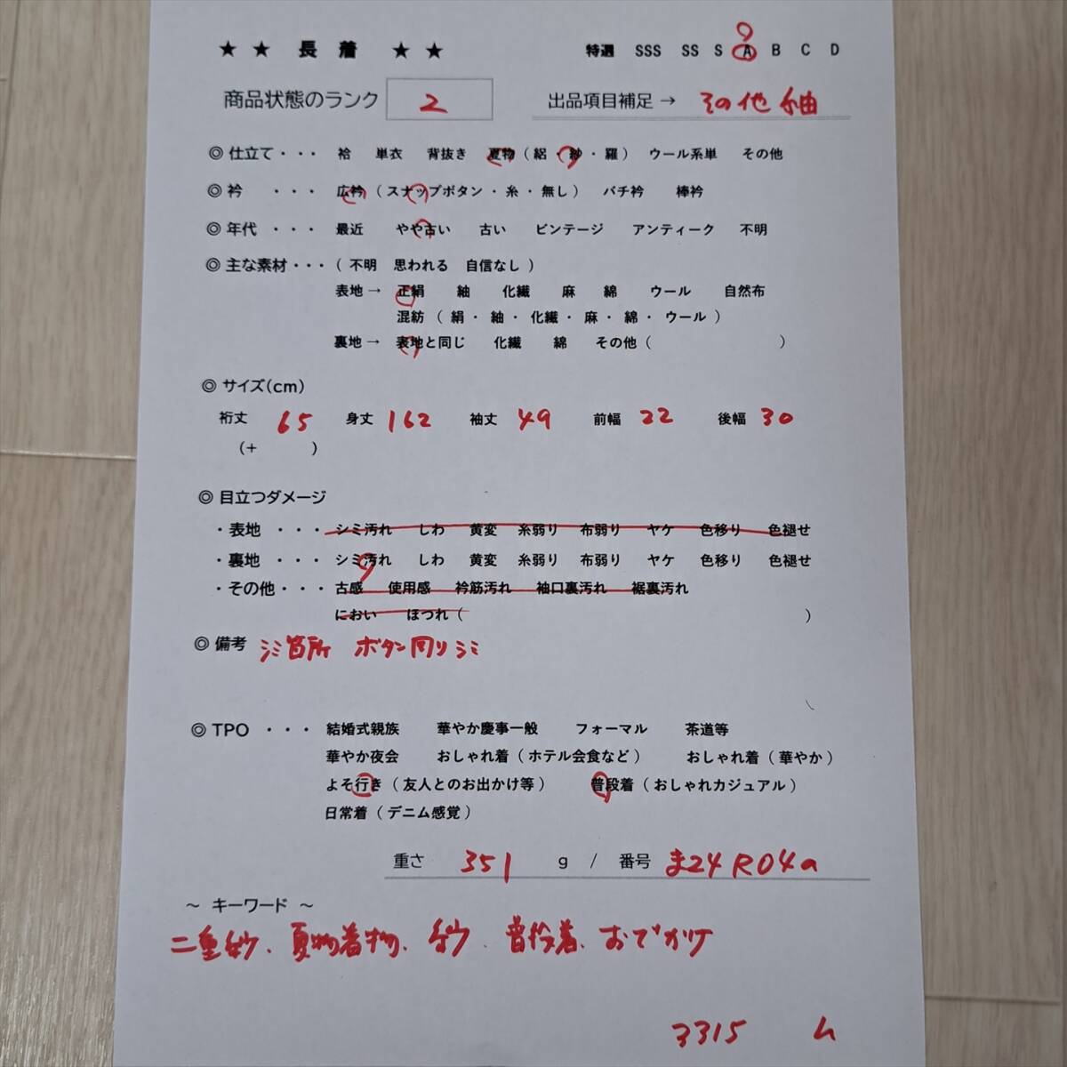 Z | 着用向けではなくコレクション、鑑賞向けとして販売するお品ものです。布の力が無くリメイクも難しい場合が多いです。 様々な難やシミなどございますので、古き物をご理解いただける方のみご入札ください。ノンクレームノンリターンでお願いいたします。 |