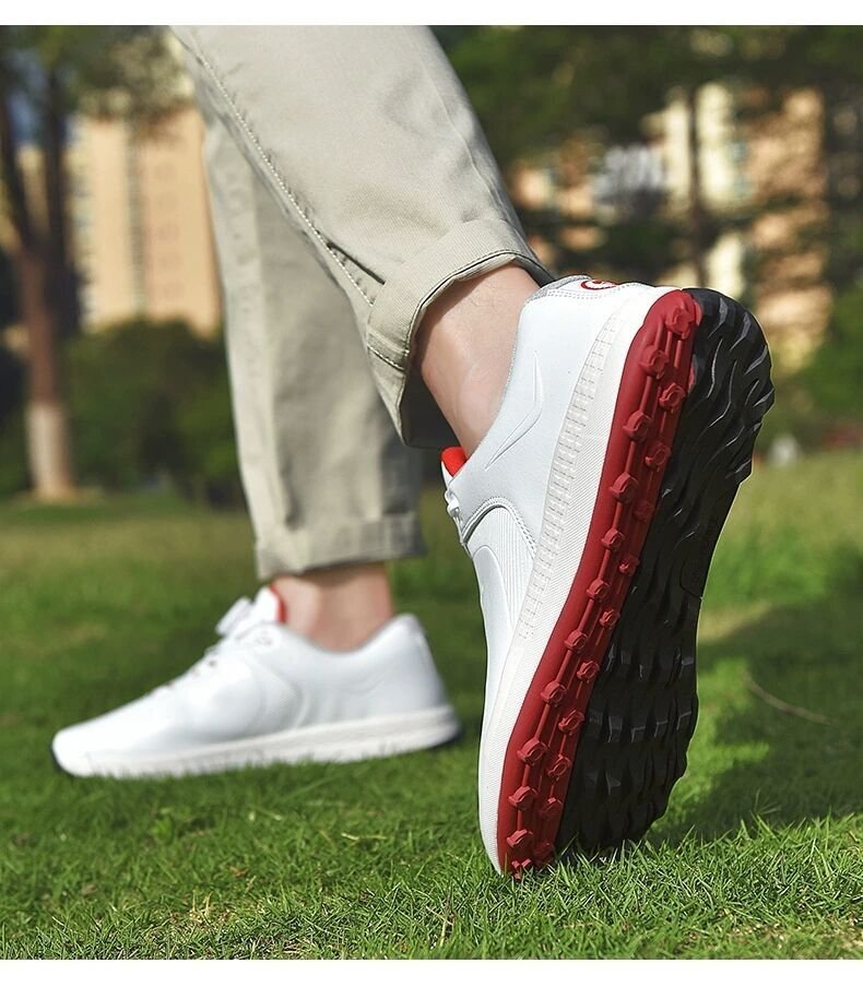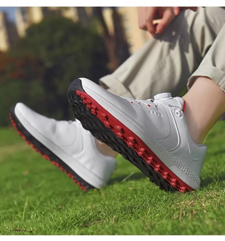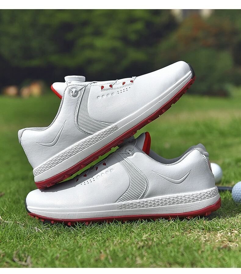 GRF-MDS-530白/赤 41 絶賛 ゴルフシューズ 強いグリップ ソフトスパイク 運動靴 フィット感 軽量スポーツシューズ 弾力性 通気39-47選択