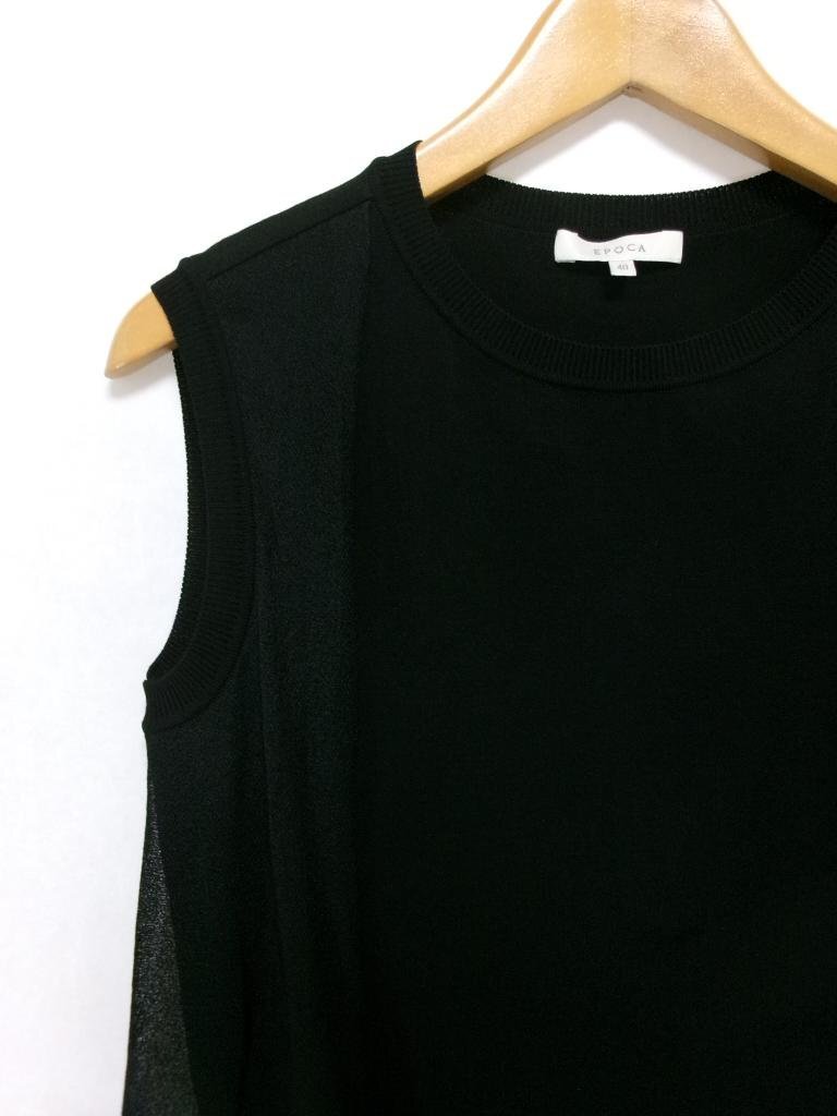 【送料込】 EPOCA エポカ ニット ブラック 黒 無地 ノースリーブ サイド別布レイヤード サイドロンング 日本製 size40 M エレガンス/970867