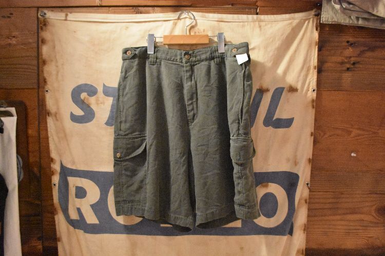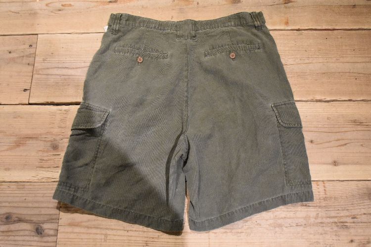 グッドスタイル◎90sビンテージTOMMY BAHAMAトミーバハマコットンカーゴショーツW33オリーブアメカジストリートサーフ w760