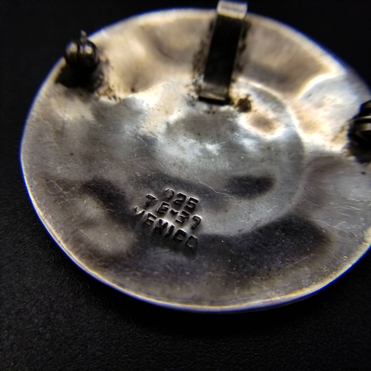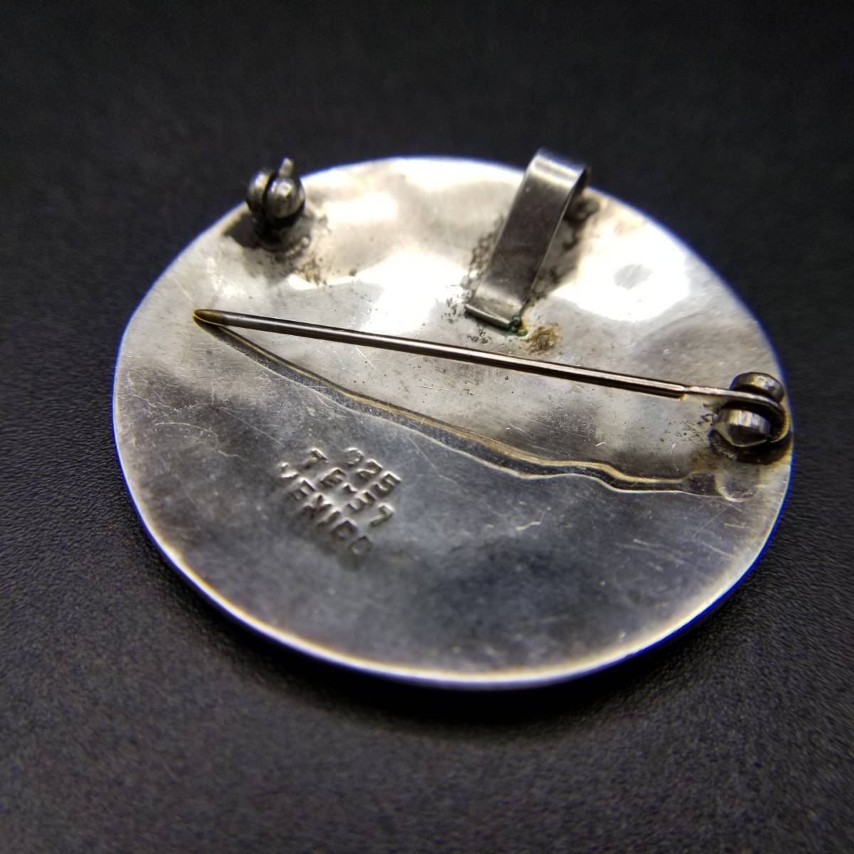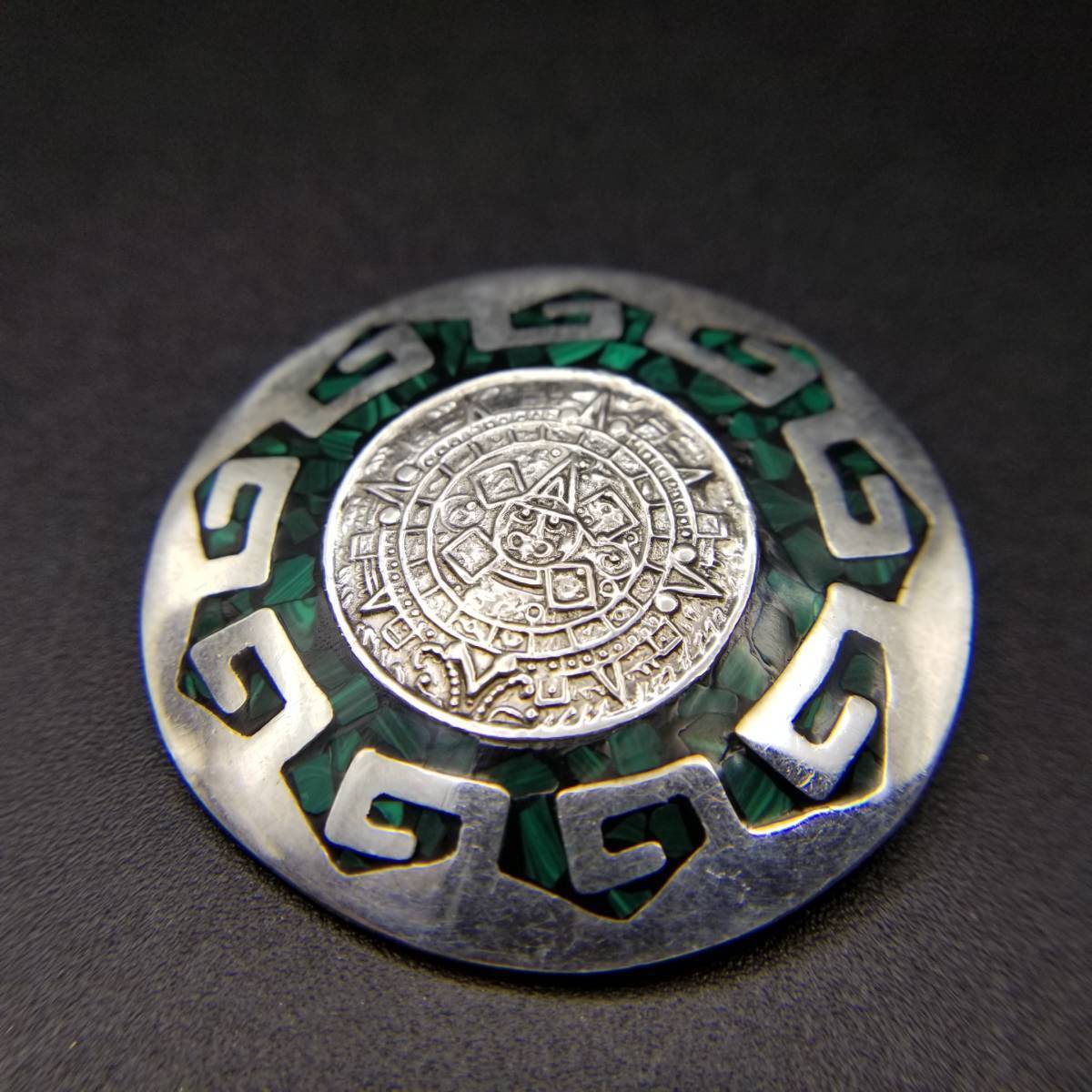 メキシコ TAXCO タスコ グリーン インレイ エンブレム 紋章 925 メキシカン ヴィンテージ シルバー ブローチ ペンダント 輸入 Y11-G